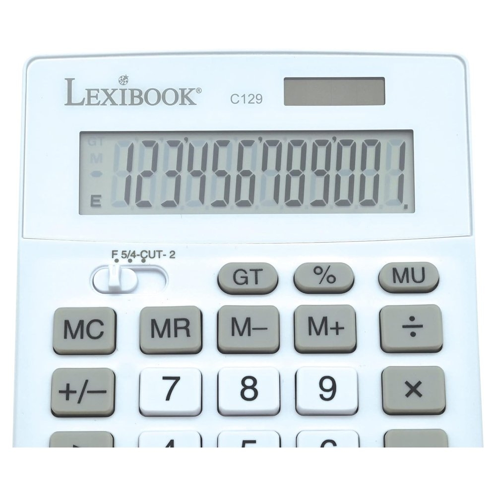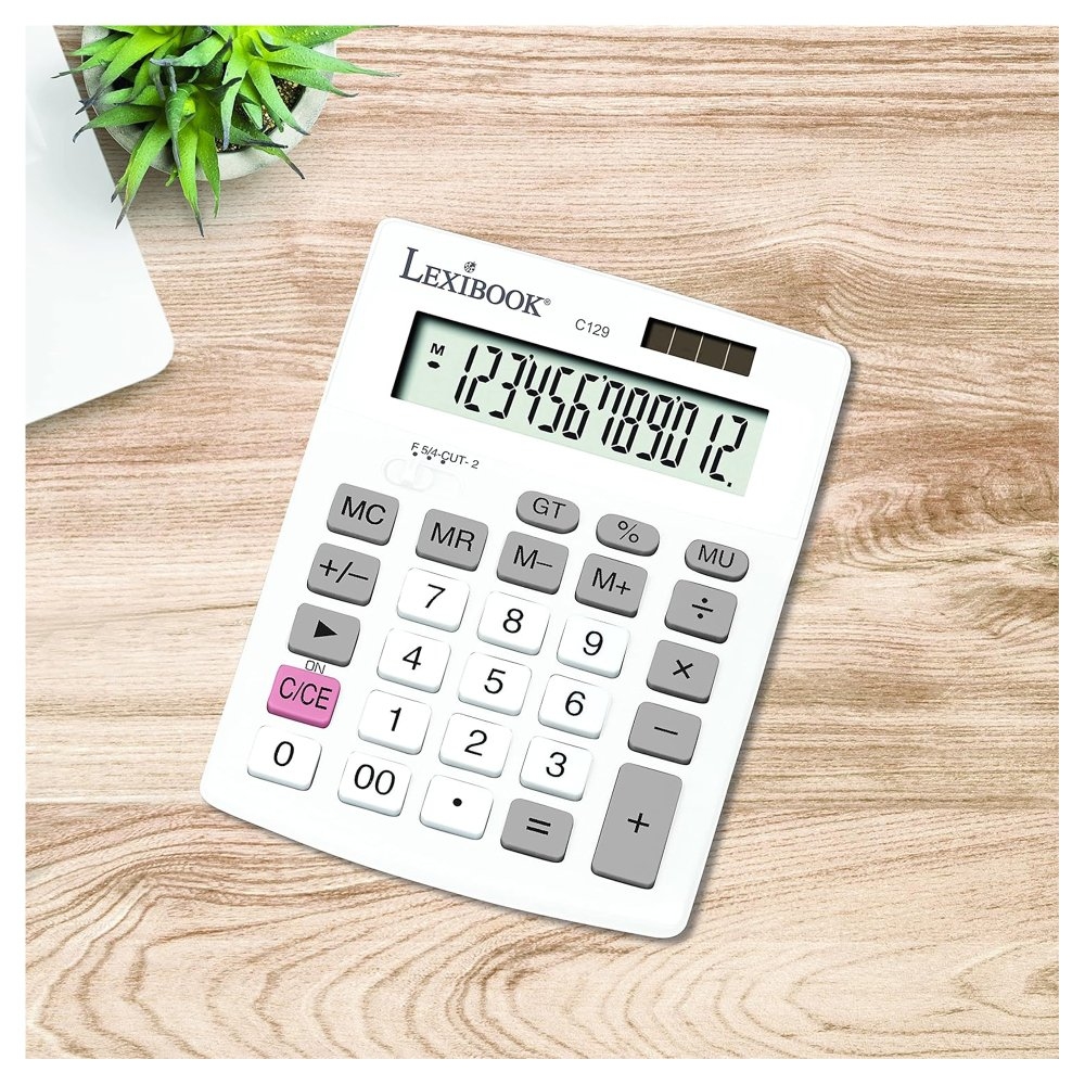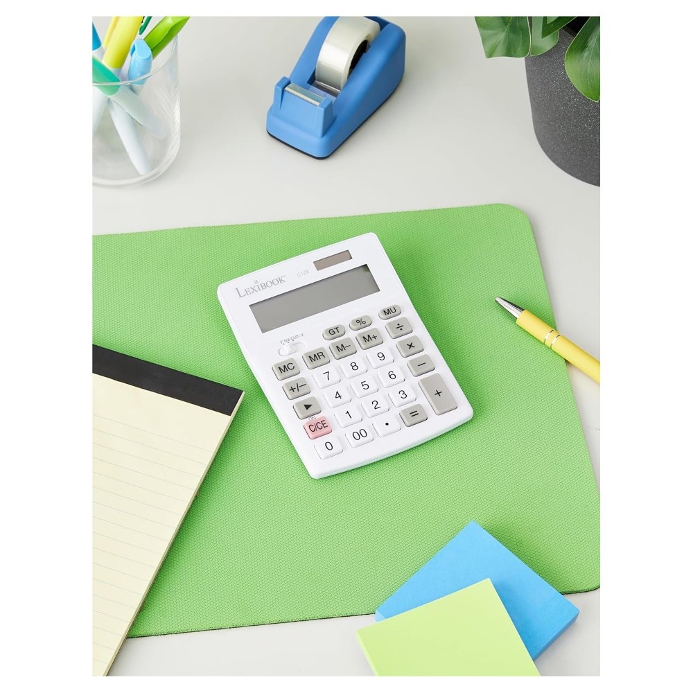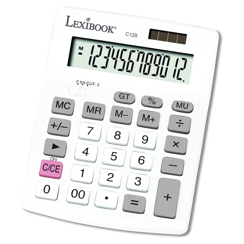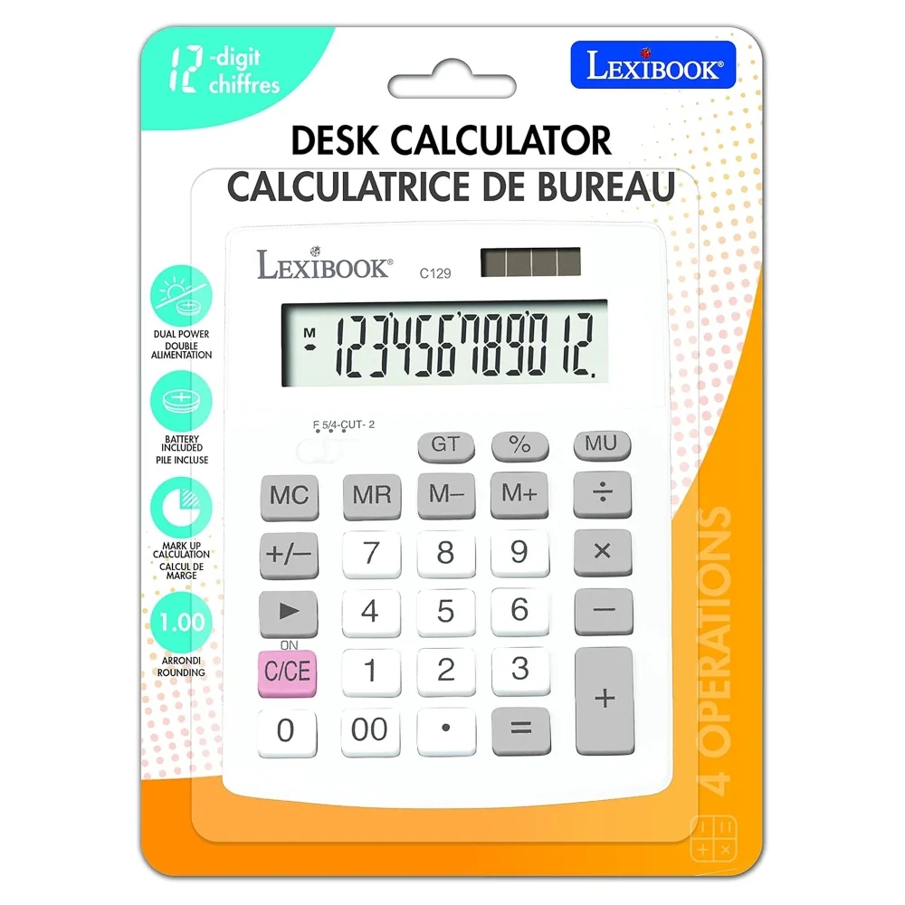 12místná kalkulačka s mimořádně velkým displejem. 4 operace + pokročilé funkce (paměť na 4 tlačítka, celkový součet, procenta) + výpočet přirážek. Funkce zaokrouhlování. Velké a odolné klávesy pro maximální pohodlí. Solární napájení se záložní baterií AG10. Automatické vypnutí. Dokonalý design pro zvýšení vaší produktivity. Rozměry: 13,7 x 10,4 x 2,85 cm.