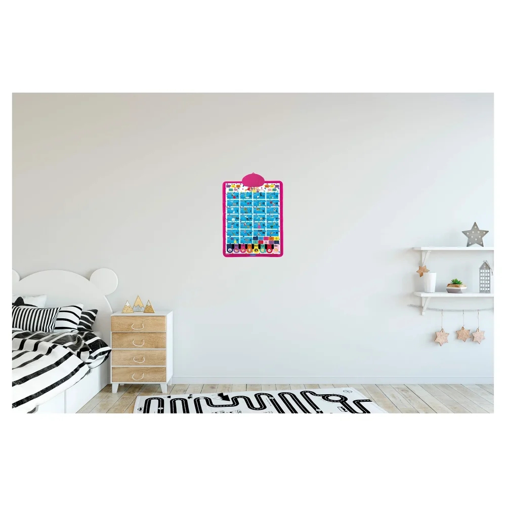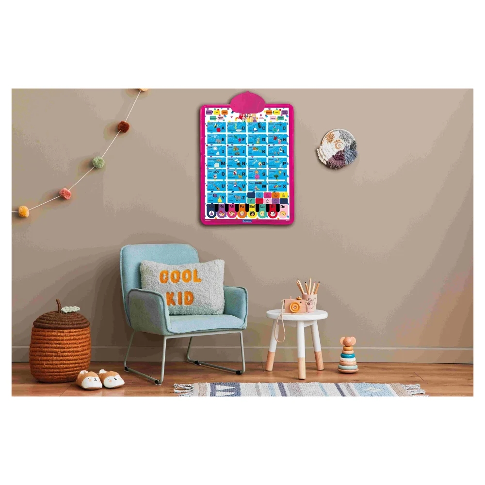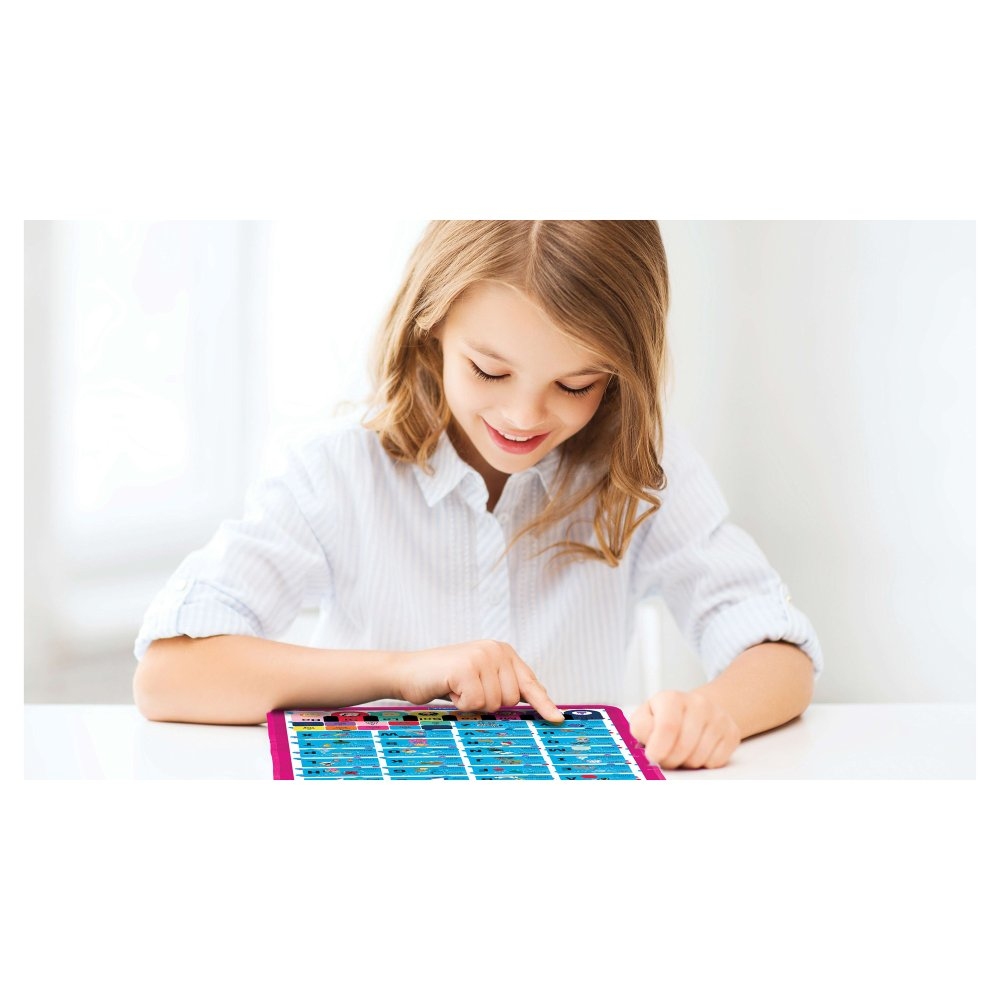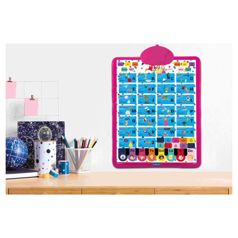 Zábavný anglicko-francouzský plakát, určený k zavěšení na zeď, je výbornou vzdělávací pomůckou pro děti od tří let. Díky několika herním režimům tento dvojjazyčný mluvící plakát děti seznamuje s čísly, abecedou, písmeny, slovní zásobou a hláskováním. Své nabyté znalosti mohou děti otestovat prostřednictvím zábavného interaktivního kvízu, ve kterém odpovídají na otázky a zadané úkoly zmáčknutím příslušného tlačítka. S vestavěným klavírem se děti mohou učit hudební noty nebo si jen tak pro radost zahrát některou z přednastavených melodií.Plakát funguje na tři 1,5 V baterie typu AAA/LR03 (nejsou součástí balení). Je snadno přenosný a s rozměry 16 x 21,5” (41 x 55,5 cm) jej snadno umístíte na zeď dětského pokoje.Interaktivní design podporuje rozvoj motorických dovedností a soustředění u dětí, zatímco vzdělávací obsah poskytuje stimulaci pro rozvoj bilingválních schopností od raného věku.Klíčové vlastnostiAnglicko-francouzský mluvící plakát Disney PrinceznyVzdělávací obsah v interaktivní forměVhodné k zavěšení na zeďStimulace rozvoje jazykových dovedností v raném věkuRůzné režimy pro učení i zábavuSeznamování se s abecedou ("Alphabet"), písmeny a slovní zásobou ("Letters and Words"), hláskováním ("Spelling word") a číslyKvíz "Find": hledání zadaného slova, písmena nebo číslaKvíz "Spelling Quiz": hláskování zadaného slova mačkáním příslušných tlačítekVestavěný klavír pro učení hudebních not nebo k zábavnému hraníTlačítko opakování slova, písmena atd. ("Repeat")MelodieNastavitelná hlasitost ("Vol.")Citlivá tlačítka na dotekRozvoj motorických dovedností a soustředěníMožnost přepínání mezi francouzštinou a angličtinou ("EN/FR")Velikost: 16 x 21,5” (41 x 55,5 cm)Napájení: 3x 1,5 V baterie typu AAA/LR03 (nejsou součástí balení), přihrádku otevřete pomocí šroubováku (není součástí balení)