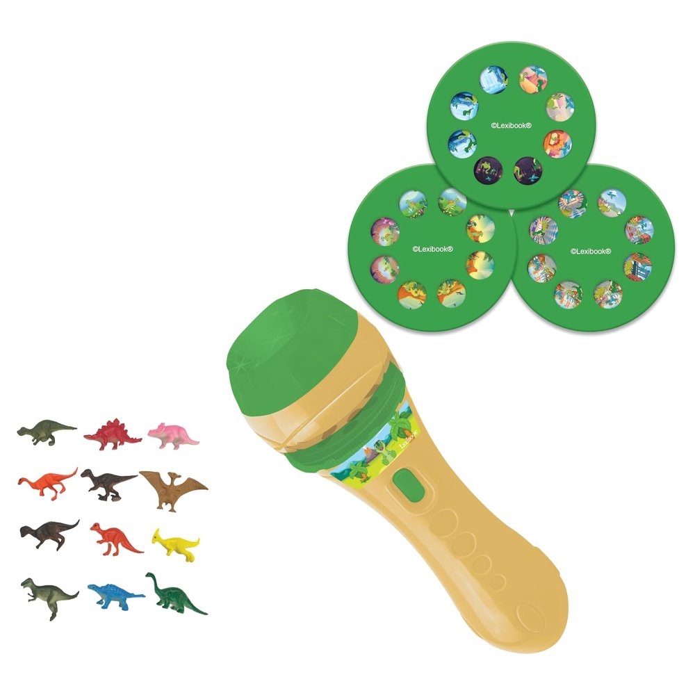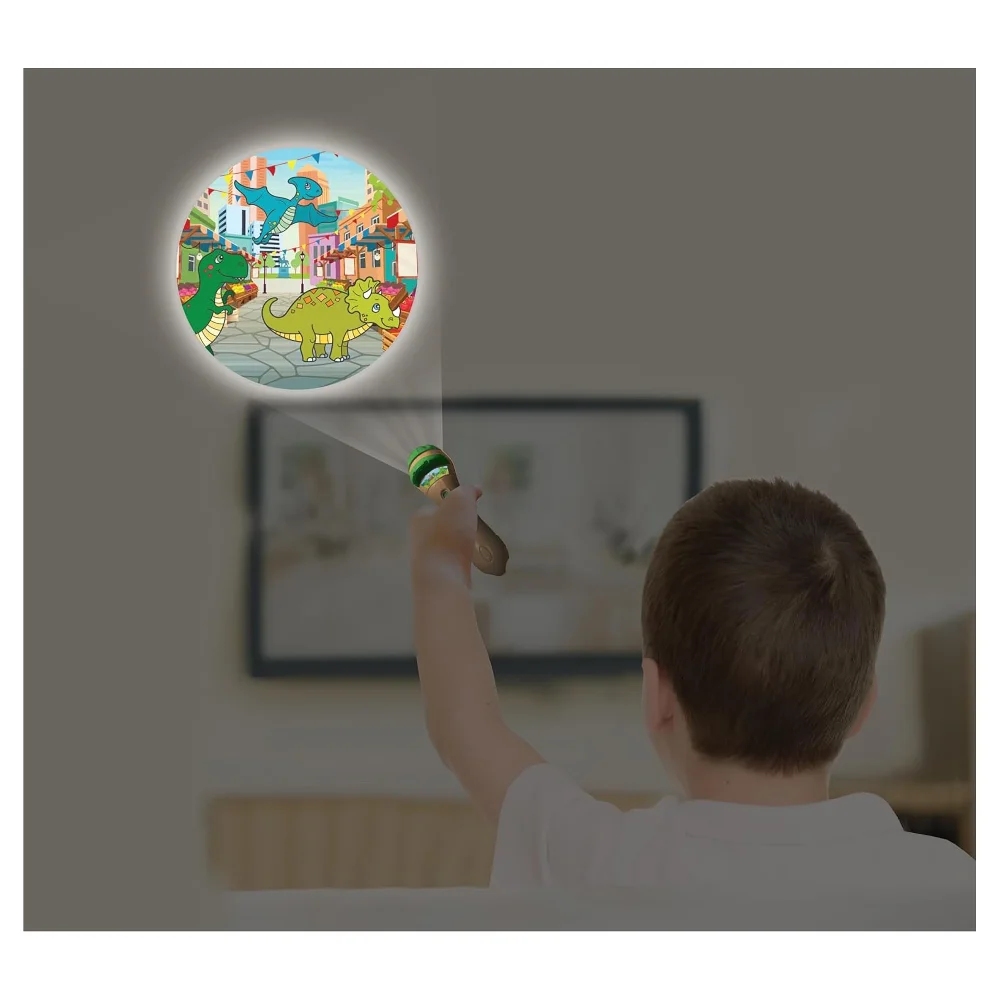 Díky 24 obrázkům na třech discích mohou děti sledovat, jak příběh jejich oblíbených hrdinů ožívá přímo v jejich dětském pokoji. Jednoduše vložte disk do přihrádky (vždy pouze jeden) a jemným otáčením snímky obměňujte. Vytvářejte vlastní scénáře prostřednictvím obrázků, které na sebe navazují v logickém pořadí. Promítejte ve tmě na zeď nebo strop a proměňte váš pokoj v malé divadlo. Tento projektor 2 v 1 funguje po odebrání disku jako praktická baterka s jemným bílým LED světlem. Součástí sady jsou barevné figurky dinosaurů.Baterka s projektorem je napájena třemi 1,5 V bateriemi typu AG13/LR44 (jsou součástí balení).Tvorba příběhů je skvělým nástrojem ke stimulaci kreativity u dětí. Tato činnost je nejen zábavná, ale také napomáhá schopnosti přemýšlet mimo stereotypy. Dále rozvíjí řadu dovedností, jako jsou například fantazie a slovní vyjadřování.Klíčové vlastnostiDárková sada Dinosauři – Dětská baterka s projektorem 2v124 obrázků na 3 discích (po 8 na každém)12 barevných figurek dinosaurůNetradiční způsob vyprávění pohádekTvoření vlastních příběhůStimulace kreativity, rozvoj fantazie a slovního vyjadřováníLogické pořadí po sobě jdoucích obrázkůDivadlo ve tmě na stropě nebo zdech pokojeV případě potřeby můžete nastavit ohniskovou vzdálenost otáčením přední částiPraktická baterka s LED světlem (jemné bílé) po odebrání diskuRozměry produktu: 3,7 x 3,7 x 11,5 cmNapájení: 3x 1,5 V baterie typu AG13/LR44 (jsou součástí balení), pro budoucí výměnu baterií přihrádku otevřete pomocí šroubováku (není součástí balení)