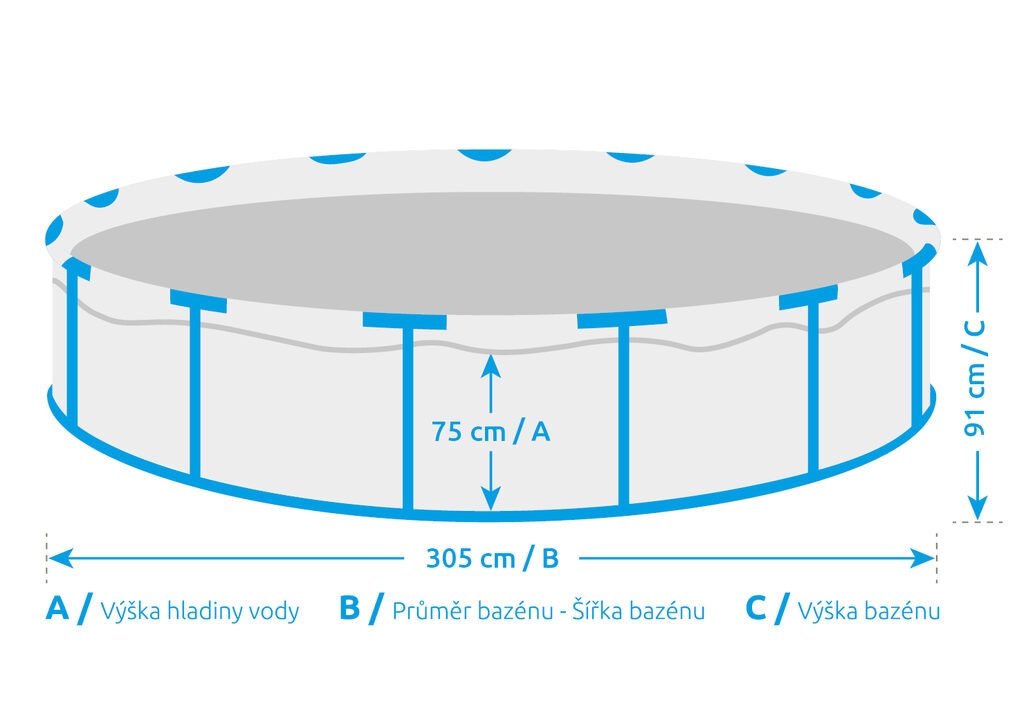 <p>EAN: 8590517100048 </p> <p>Rozměry: průměr 3,05 m; výška bazénu 0,91 m; hloubka vody 0,75 m; celkový objem vody 5,2 m2</p> <p>Součást balení: skimmer</p> <table> <tbody> <tr> <td></td></tr></tbody></table>