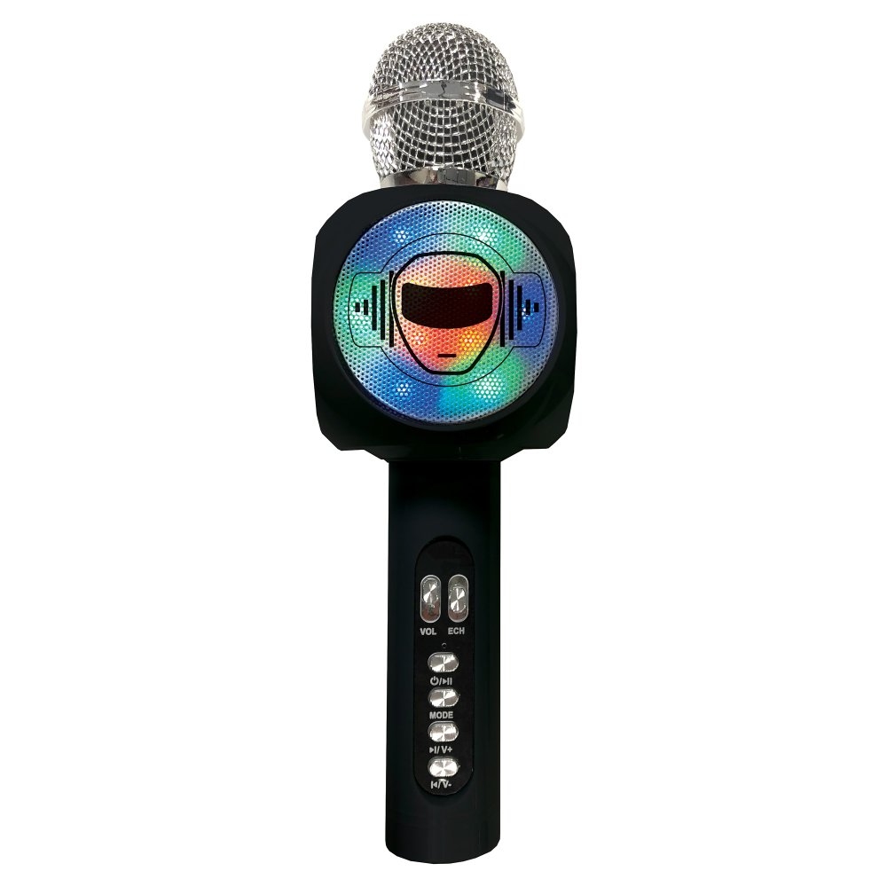 Jedinečný mikrofon, který funguje se všemi zařízeními podporujícími technologii Bluetooth, si vaše ratolesti zamilují a užijí si s ním spousty zábavy. Přitom zazáří jako opravdové hvězdy pop music. Díky dobíjecí baterii zvládne mikrofon až 3 hodiny v provozu! Tu správnou atmosféru doladí blikající světla v sedmi režimech a možnost změny hlasu: dětský hlas, vysoký ženský hlas, hluboký mužský hlas. Úžasná karaoke show může začít! Výběr změny hlasu pouhým stisknutím tlačítka. Slot pro kartu micro SD/TF. Zabudovaný 3W reproduktor pro vysoce kvalitní zvuk. Dobíjecí baterie pro přibližně 3 hodiny přehrávání hudby. LED světla se 7 režimy projekce a 5 barvami. Tlačítko ovládání hudby: přehrát/pozastavit, předchozí/následující, hlasitosti. Záruka 2 roky. Vyrobeno v Číně.