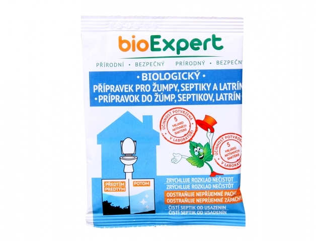 Biologický přípravek odbourává a rozkládá celulózu, tuky a těkavé mastné kyseliny, bílkoviny a sacharidy v žumpách, septicích a toaletách. Zrychluje rozklad nečistot, odstraňuje nepříjemné pachy, čistí septik od usazenin. Udržuje žumpy a septiky v dobrém stavu s minimální potřebou vyprazdňování díky účinnému odbourávání tuků, olejů, bílkovin, škrobu a toaletního papíru. Způsob použití: obsah sáčku vysypte do toalety a spláchněte. Počáteční dávka: pro septiky o objemu 1 - 4 m3: 1 sáček na týden, objem větší než 4 m3: 2 sáčky na týden.