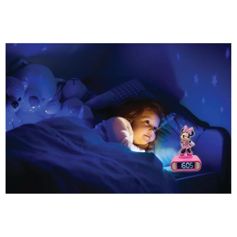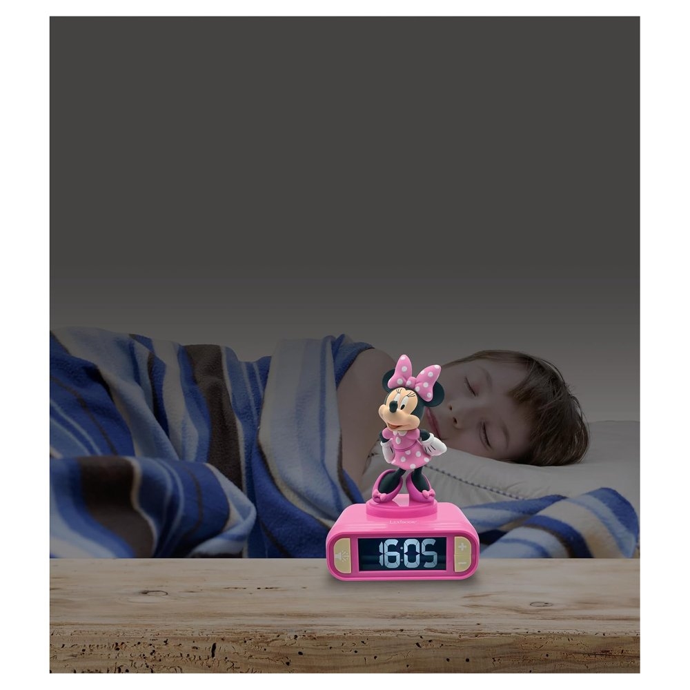 S velkou mašlí, roztomilýma myšíma ušima, stylovými šaty a hřejivým úsměvem je Myška Minnie od Disney rozkošnou a dobrosrdečnou kreslenou postavičkou, která baví děti již po celá desetiletí! Je okouzlující a hravá, miluje zpěv a tanec a vždy ví, co říct. Minnie představuje ty nejlepší vlastnosti – laskavost, vybrané způsoby, pozitivitu a smysl pro humor – a je tak skvělým společníkem pro vaše nejmenší na jejich cestě dětstvím!Tento roztomilý budík má všechno potřebné pro zajištění klidné noci a senzačního rána! S uživatelsky přívětivými ovládacími tlačítky můžete hodiny lehce nastavit v režimu 12/24 hodin a stejně tak i čas budíku; to vše dobře viditelné na podsvícené LCD obrazovce nenarušující spánek. Na výběr máte ze šesti různých tematických tónů budíku a extra tlačítka se šesti tematickými zvukovými efekty pro ještě větší zábavu! Můžete nastavit hlasitost, aby postupně rostla nebo rovnou zvolit vyšší úroveň. A co je na něm to nejlepší? Rozhodně zářící 3D noční světlo, které se rozsvítí při stisknutí horní části zařízení nebo když zazvoní budík! Navíc se světlo automaticky zhasne po dvou minutách nebo když horní část znovu stisknete. Chcete-li vypnout budík, stačí jen stisknout jeho horní část. A pro ty, kteří se chtějí dál válet v posteli, je tu funkce odložení, která přinese dalších devět minut spánku!Budík je napájen třemi 1,5V bateriemi typu AA/LR6 (nejsou součástí balení). Na obrazovce se zobrazí ukazatel vybité baterie, když je nutná jejich výměna, a ikony pro odložení a nastavení budíku.Přidání budíku do dětského pokoje může dítě pomoct naučit, jak číst hodiny, kdy má ráno vstát z postele, v kolik musí být ve škole a jak má úměrně svému věku hospodařit s časem!Klíčové vlastnostiTéma Myška MinnieSkvělý nástroj, jak se naučit číst hodinyMůže pomoct naučit hospodaření s časem odpovídající věku dítěteBudík s 3D nočním světlem6 různých tématických tónů budíku a tlačítko pro zvukové efektyPodsvícená LCD obrazovka nenarušující spánekNastavitelná hlasitostJednoduchým stisknutím horní části nebo zazvoněním budíku se zařízení rozsvítí (světlo se automaticky vypne po 2 minutách nebo stisknutím)Chcete-li zastavit budík – prostě stiskněte horní nebo spodní část zařízeníFunkce odložení (odloženo o 9 minut)Budík se automaticky zastaví po 5 minutách, pokud není stisknuto žádné tlačítko (1 minuta, pokud je aktivována funkce odložení)Snadné nastavení času a budíku; uživatelsky přívětivá tlačítka a ikony viditelné na obrazovceNapájení 3x 1,5V baterie typu AA/LR6 (nejsou součástí balení)