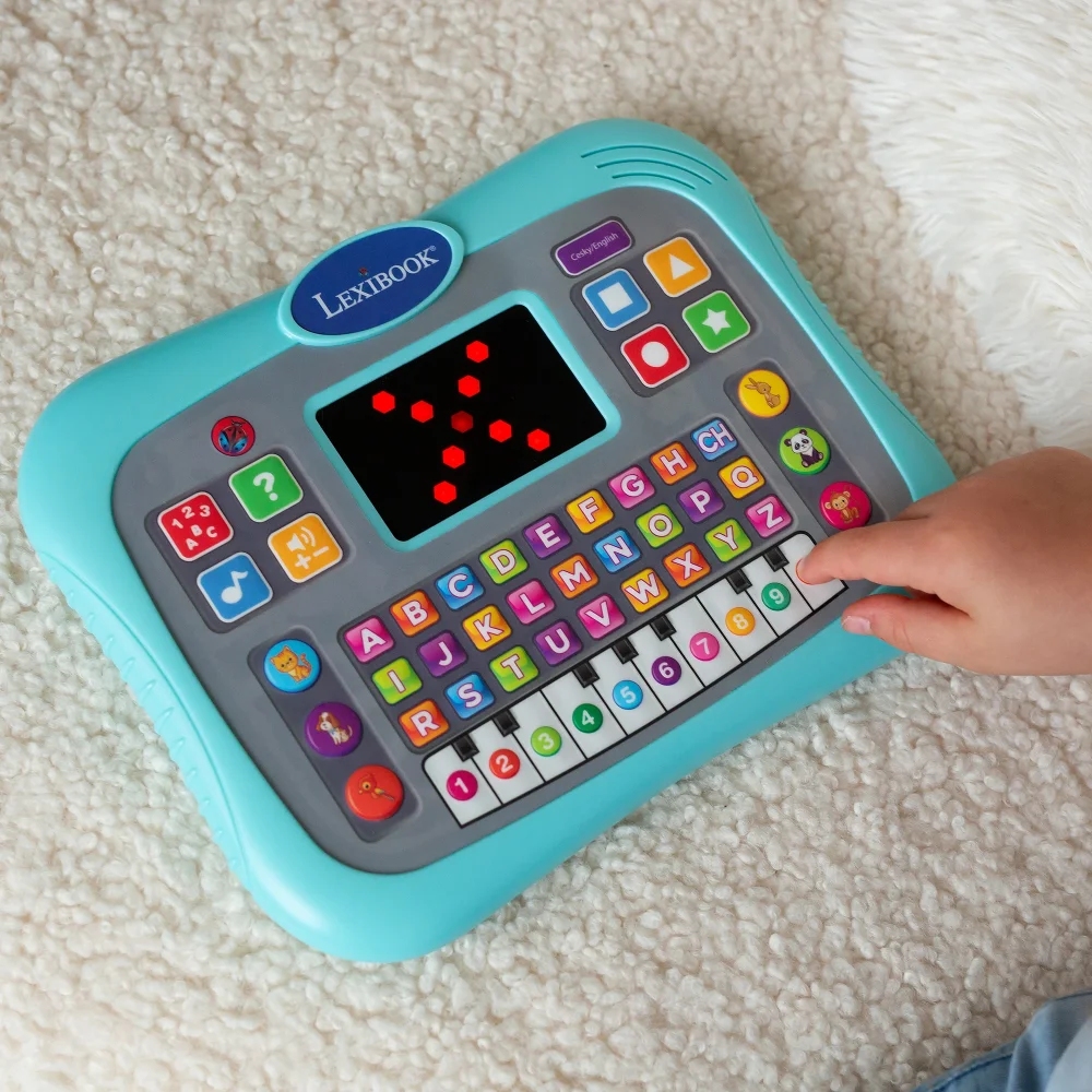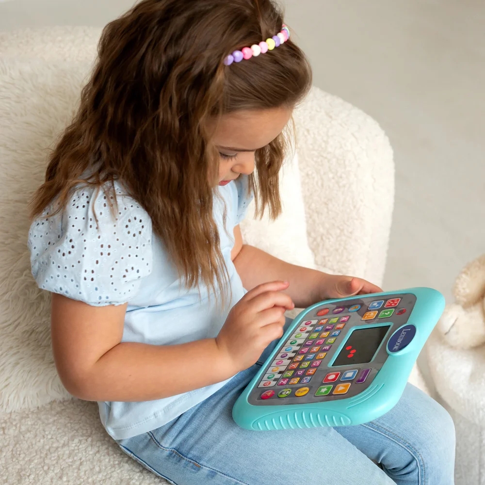 ABC bilingvní mluvící dětský tablet pomáhá dětem s učením. Děti mohou stisknout tlačítko a na LED displeji se objeví odpovídající písmeno. Hračka nabízí pět režimů: objevování čísel a písmen, slova, učení se hláskování, kvízový režim a hudební lekce. V kvízovém režimu děti hledají odpovědi na otázky a reagují jednoduchým kliknutím. Tablet také obsahuje klávesy na piano a pomáhá dětem učit se zvuky zvířat a barvy. Je tenký a lehký, což usnadňuje přenosnost.Tablet pro děti funguje na tři baterie AA/LR06 (nejsou součástí balení).Podněcování aktivit, které podporují přirozenou zvídavost a touhu dětí po učení, posiluje mozek a rozvíjí jejich schopnosti. Navíc, získání jazykových dovedností v raném věku je mnohem snazší a přirozenější.Klíčové vlastnosti Dětský výukový tablet ABC, česko-anglický Pozn.: v tomto zařízení jsou dostupné pouze dva uvedené jazyky Hračka vhodná pro menší děti od 3 let Dotyková tlačítka LCD displej zobrazující písmena 5 režimů - čísla a písmena, slova, hláskování, kvíz a hudební lekce Odpovídání stiskem tlačítka Klávesy na piano, učení barev nebo zvuků zvířat Tenký a lehký Přibližná velikost: 24 x 19 x 0,1 cm Baterie: 3x baterie AA/LR06 (nejsou součástí balení)