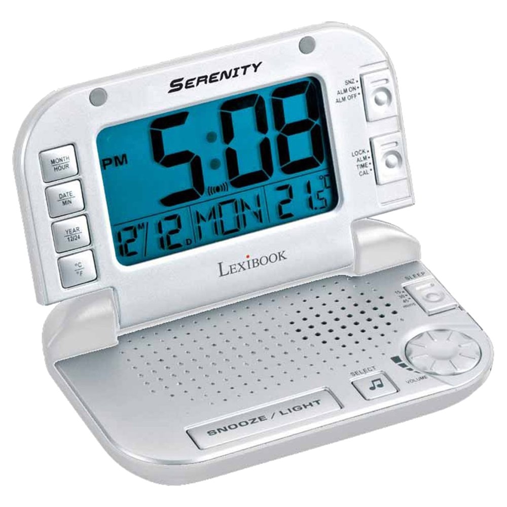 Možnost naprogramovat délku trvání zvuků na 15, 30 nebo 45 minut pro klidné usínání. SNadno přístupná tlačítka pro vypnutí a funkci „odložení“. Ovládání hlasitosti Tlačítko pro výběr relaxačního zvuku. Integrovaný kalendář s rokem, měsícem, datem a dnem v týdnu. Modře podsvícený displej. Zobrazení teploty. Výstup Jack pro připojení sluchátek. Napájení: 4 baterie AAA (nejsou součástí dodávky). Navrženo a vyvinuto v Evropě - vyrobeno v Číně. Záruka: 2 roky.