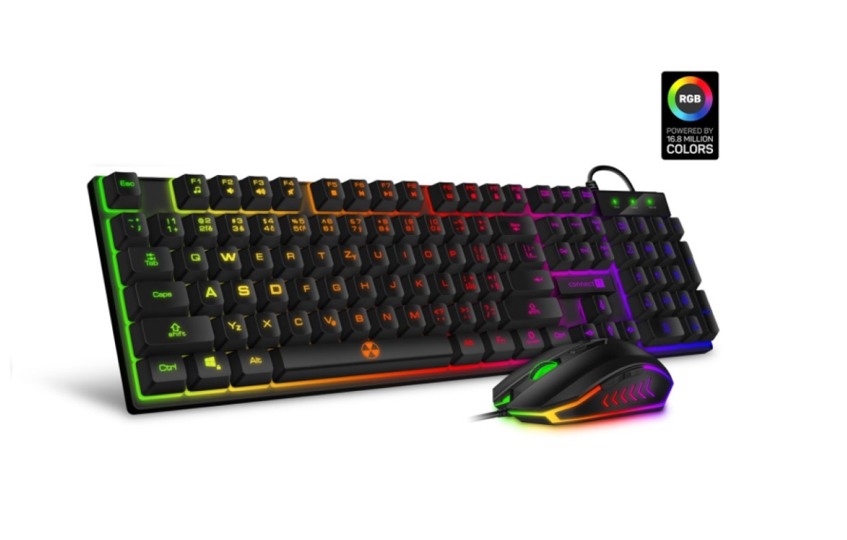 Herní set klávesnice a myši CKM-3200-CS, s RGB podsvícením, CZ/SK layoutem, 12 multimediálními klávesami a vysokou odolností pro každodenní hraní i práci.