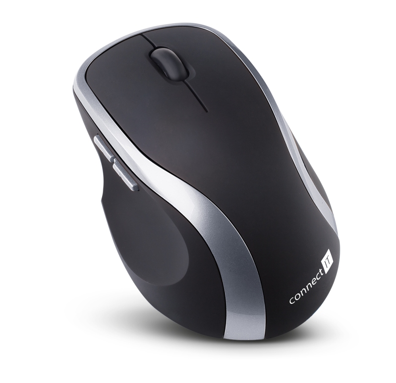 Stylová bezdrátová laserová myš Connect IT CI-261 s rozlišením 1000 DPI, ergonomickým úchopem, rozšířenou sestavou tlačítek a elegantním stříbrním designem. Funguje až na 10 m, včetně baterií v balení.