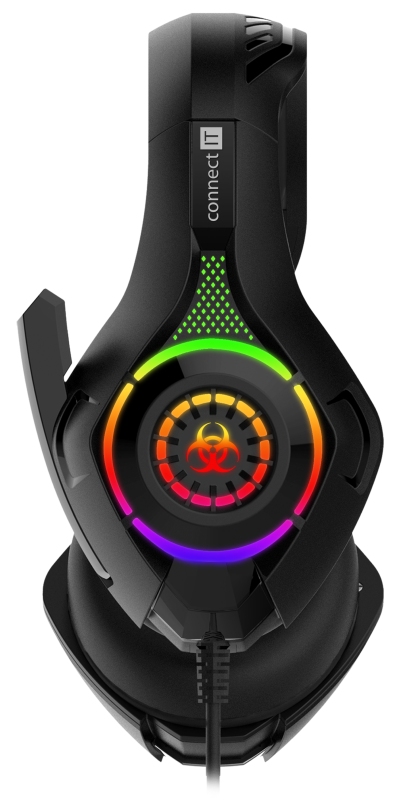 Connect IT Biohazard RGB herní sluchátka s mikrofonem, 1xJack+USB - černá