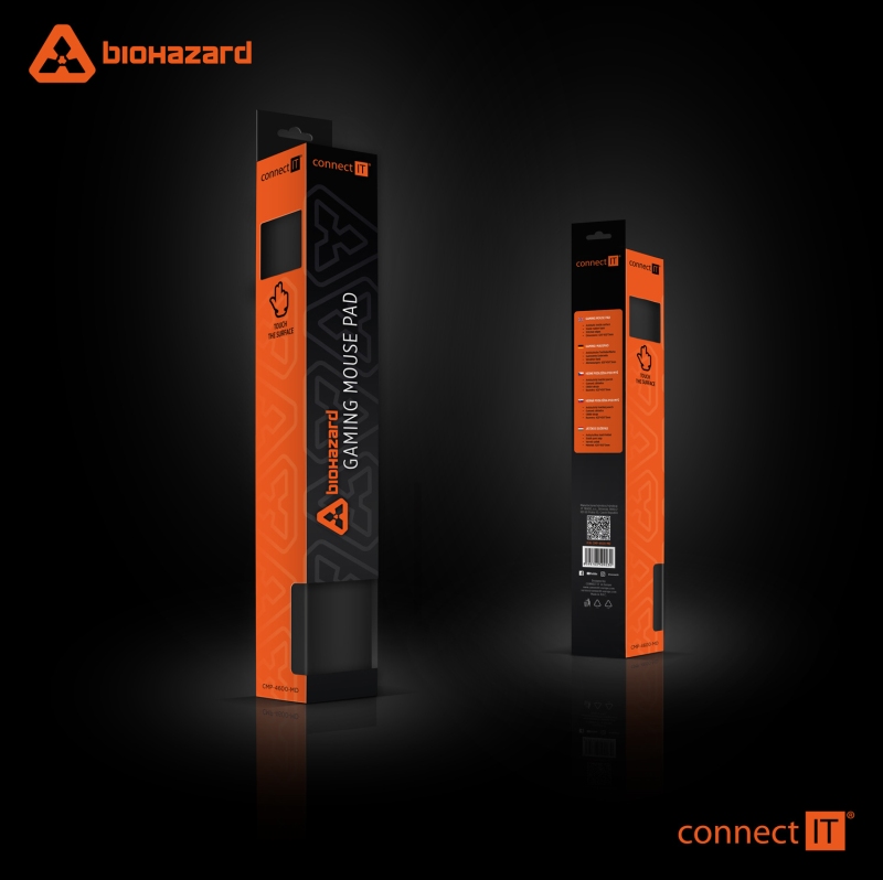 Velká herní podložka Connect IT BIOHAZARD Strike poskytující přesný povrch, stabilitu a dostatek prostoru pro pohyb myši.