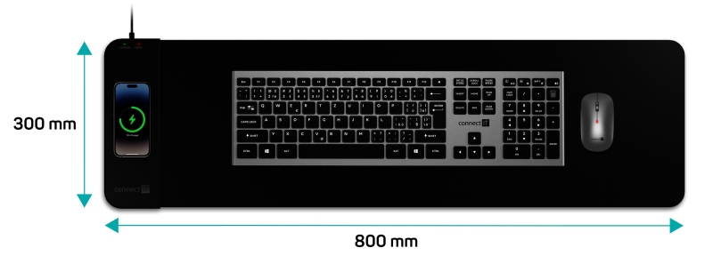 Connect IT CHARGE nabíjecí podložka pod klávesnici a myš, vel. L (800 × 300 mm) – černá