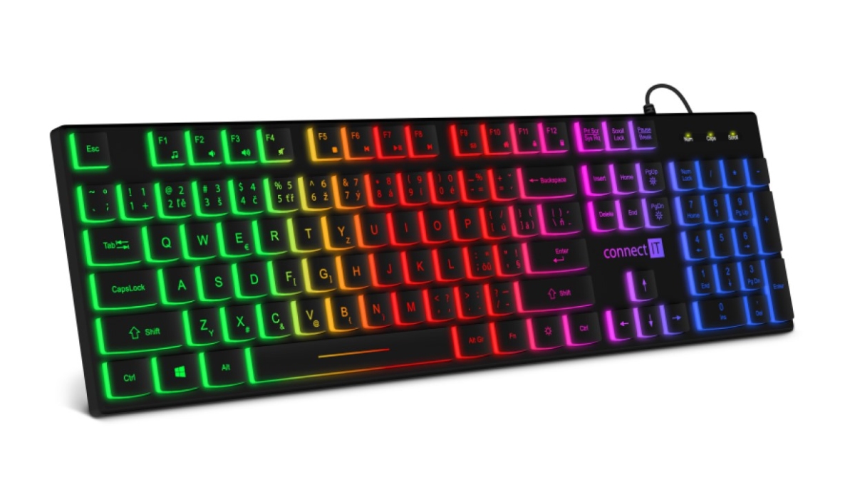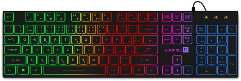 Connect IT Chocolate Rnbw kancelářská podsvícená klávesnice, CZ/SK - černá