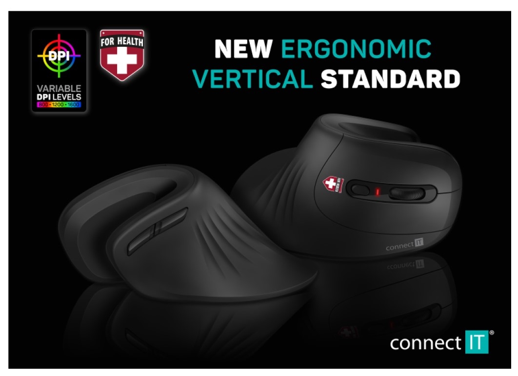 Connect IT For Health ErgoMax ergonomická vertikální bezdrátová myš (+1x AA baterie) - černá