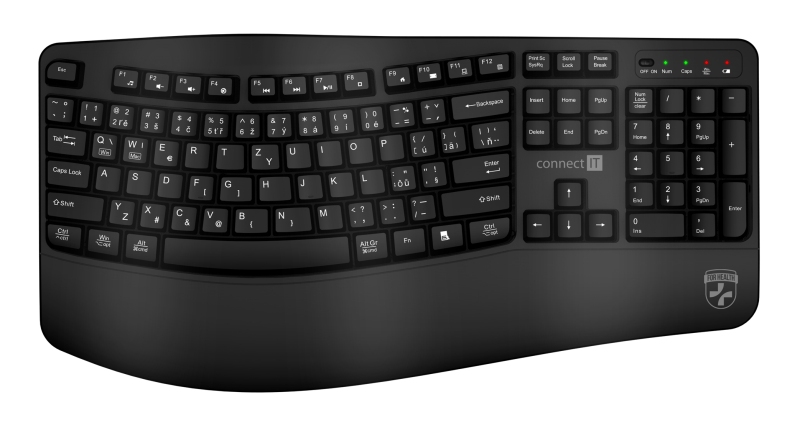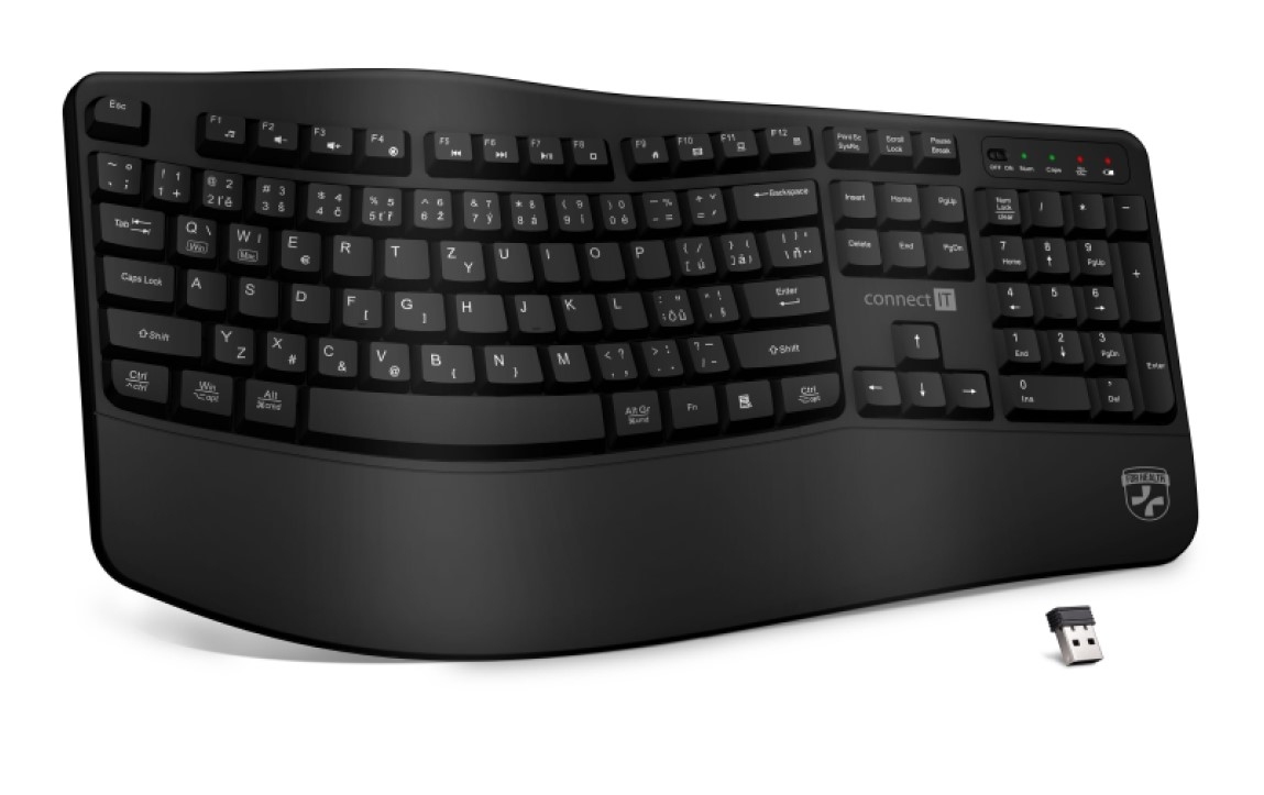 Connect IT For Health Ergonomická bezdrátová klávesnice ErgoOffice (+ baterie zdarma), CZ/SK – černá