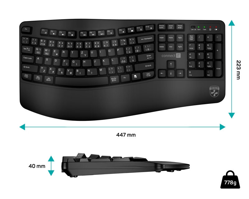 - Ergonomická klávesnice Connect IT For Health ErgoOffice