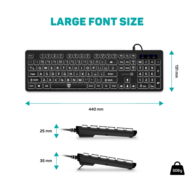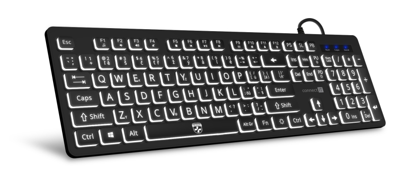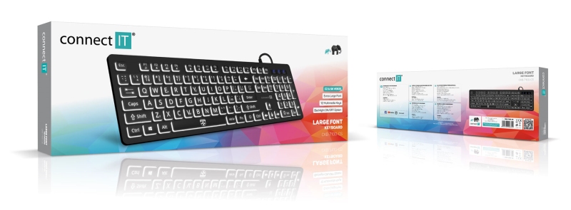 Connect IT For Health LargeFont klávesnice s velkým fontem, CZ/SK - černá
