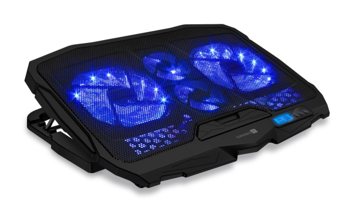 Connect IT FrostWind chladicí podložka pod notebook s modrým podsvícením - černá