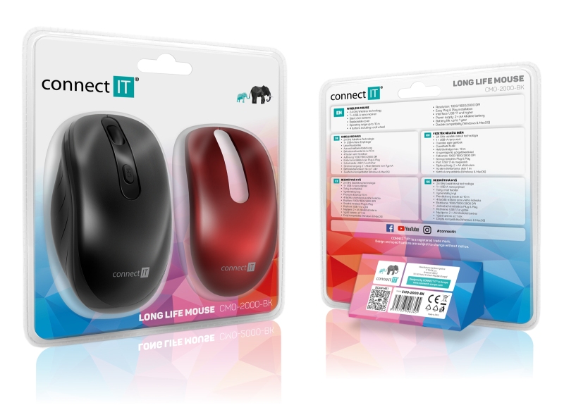 Connect IT Long Life bezdrátová optická tichá myš (+2x AA baterie) - černá