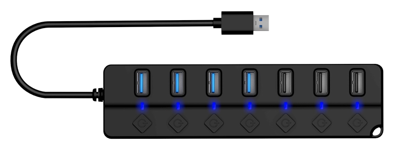 Praktický 7portový USB-A hub CHU-5410-BK s přepínači ON/OFF a LED indikací. Nabízí 4× USB 3.0 a 3× USB 2.0 pro připojení více zařízení najednou, ideální pro PC i notebooky.