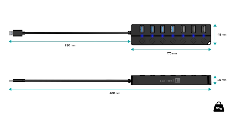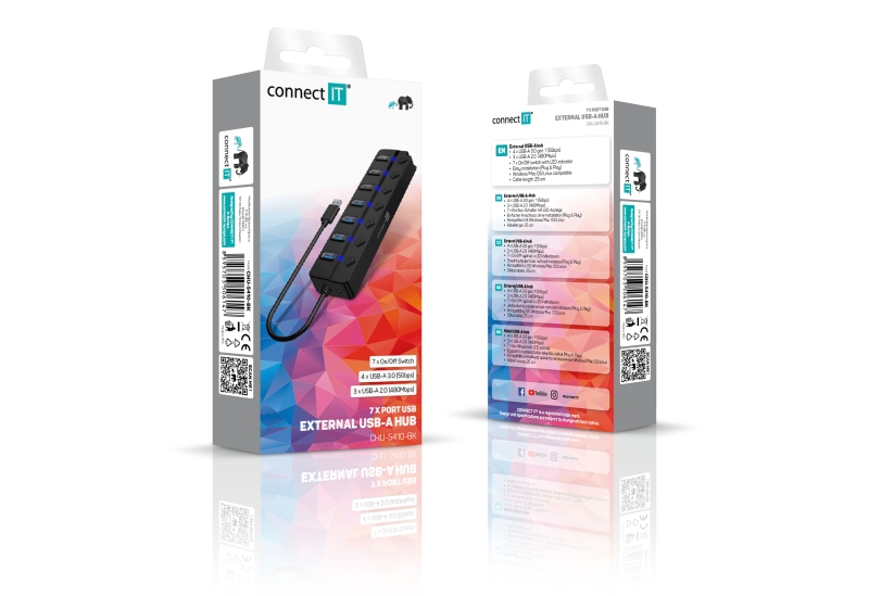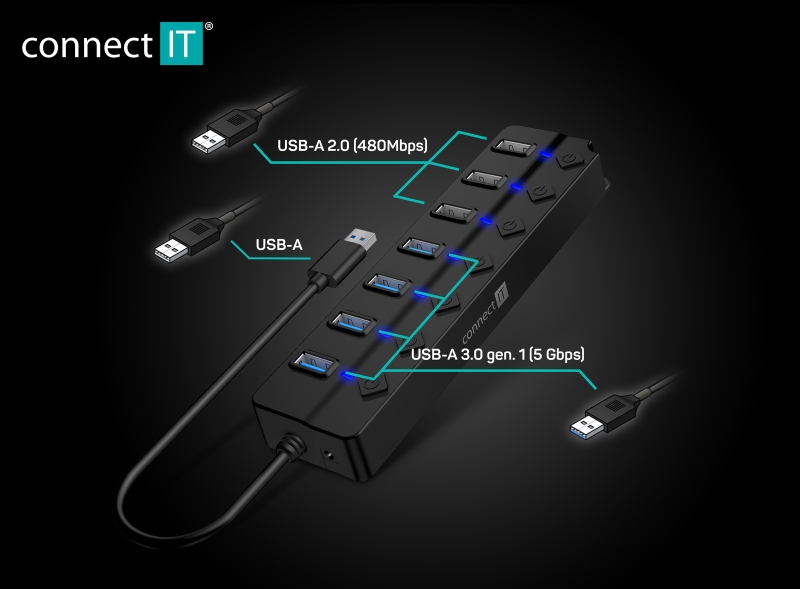 Connect IT Mighty Switch 2 USB-A hub (4xUSB-A 3.0, 3xUSB-A 2.0) - černá