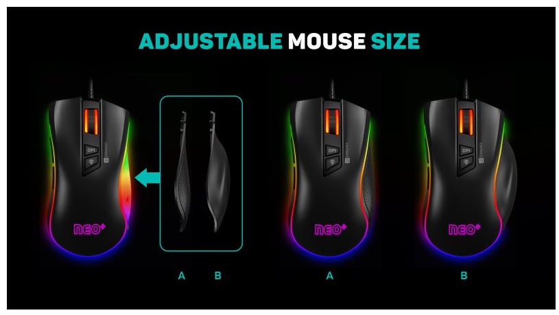 Výkonná herní myš navržená pro přesnost, pohodlí a vítězství. Model NEO+ z edice SERIES přináší špičkové herní vlastnosti včetně programovatelných tlačítek, přizpůsobitelného RGB podsvícení a podpory maker. Díky ergonomickému designu s odnímatelnou bočnicí si myš snadno přizpůsobíte na míru.