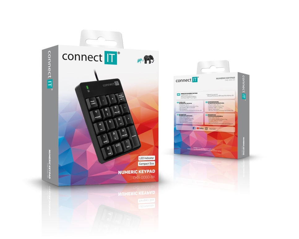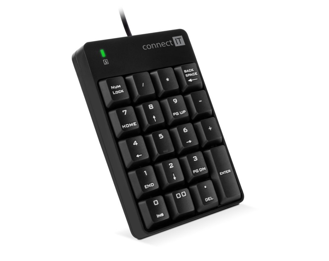 Connect IT NumCALC je drátová externí numerická klávesnice určená pro domácí i profesionální kancelářské použití. Slouží jako praktické rozšíření klávesnice zejména pro notebooky, které nemají samostatnou numerickou část, nebo pro uživatele, kteří potřebují mít numerický blok odděleně – například pro pohodlné ovládání levou rukou.