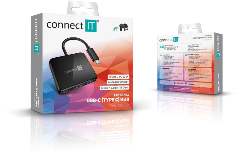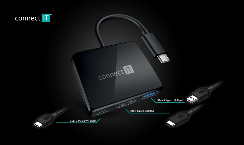 Connect IT USB-C hub, 3v1 (USB-C,USB-A,HDMI) - černá