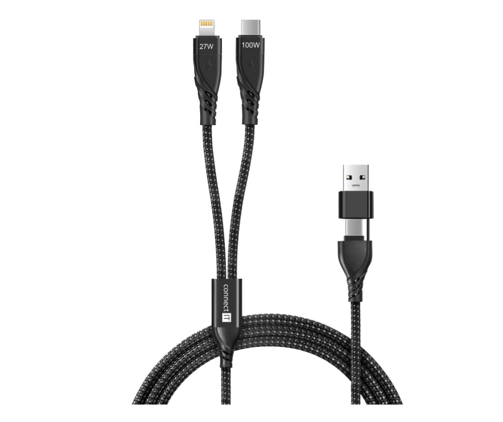 Connect IT Wirez Datový kabel 4v1, 1x USB-C, 1x Lightning, 1.25 m - černá