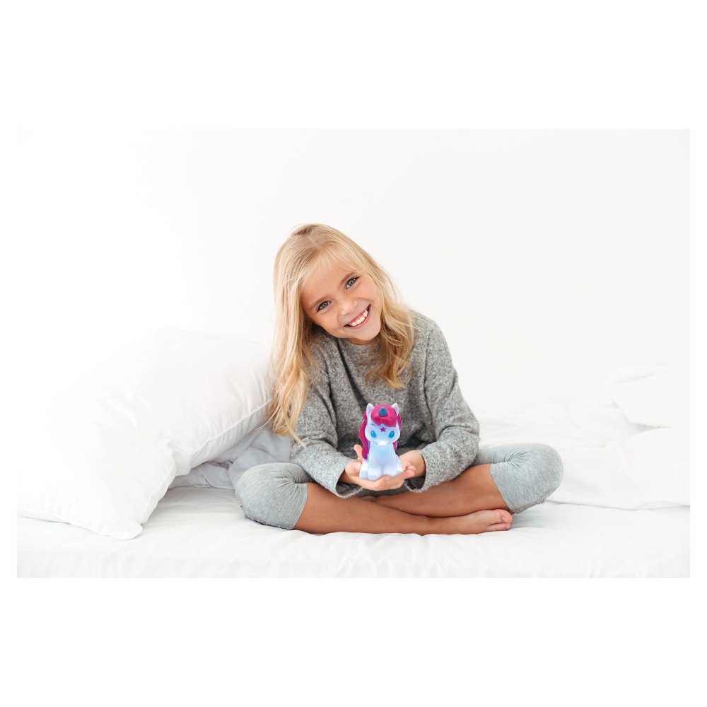 Energeticky účinné LED světlo poskytuje uklidňující osvětlení, které pomůže vašim dětem usnout. Své místo najde na nočním stolku v dětském pokoji jako příjemné tlumené osvětlení nebo jako dekorace. Snadno se přenáší díky malým rozměrům. Jemné světlo měnící barvy dítě uklidní před usnutím. Design pohádkového Jednorožce - hrajte si se svým hrdinou! Kapesní velikost, vezměte si s sebou, ať jste kdekoli. Funkce změny barvy Napájení: 3x AG13 / LR44 (součástí balení) Rozměry: 13 cm