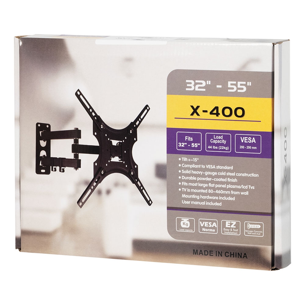 Ideální řešení pro flexibilní uchycení menších televizí. Tento nástěnný držák umožňuje pohodlné naklápění a otáčení obrazovky tak, abyste si mohli nastavit dokonalý úhel sledování. Je vhodný pro televize o velikosti 32″ až 55″ a podporuje VESA standard až 200 × 200 mm. Robustní konstrukce v černém provedení zaručuje dlouhou životnost a bezpečné uchycení.