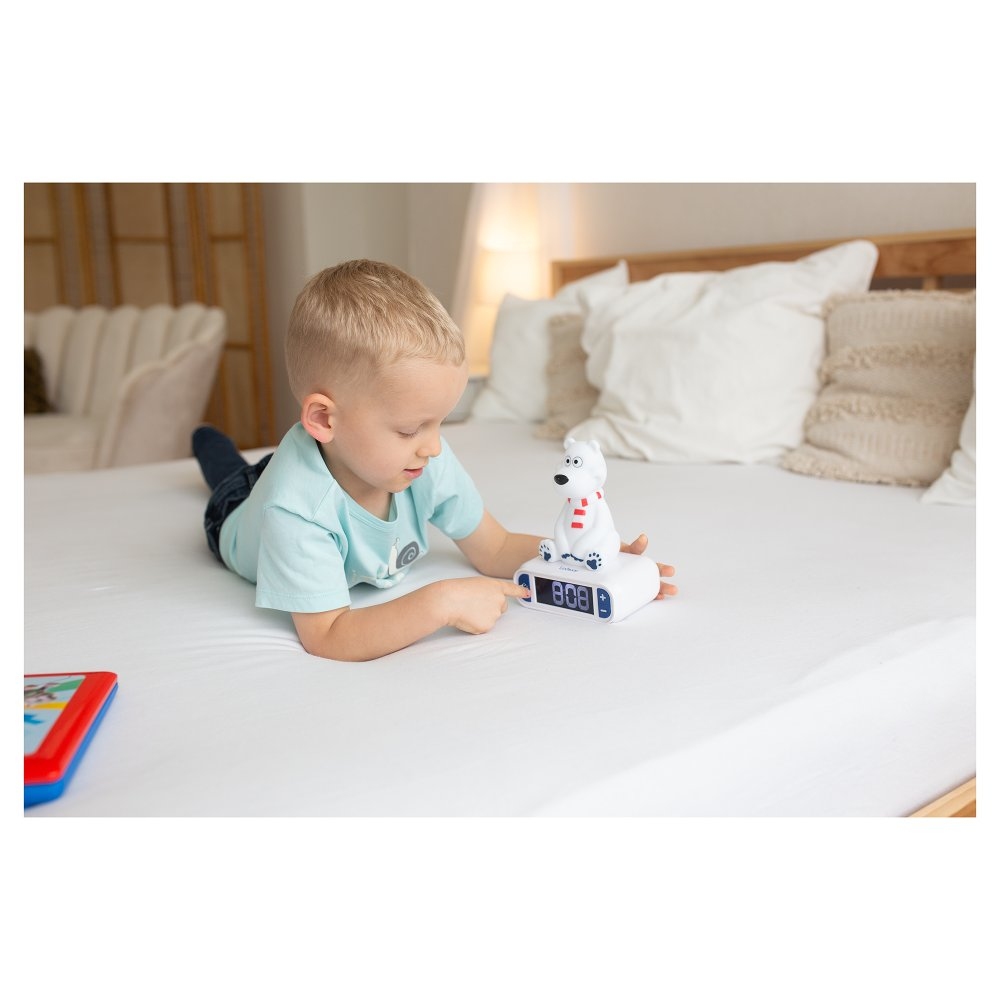 Super roztomilý budík pro děti, který se po probuzení nebo stisknutí na několik minut rozsvítí. Digitální LCD displej s dočasným podsvícením. Tlačítko pro spuštění zvukových efektů! Budík s nastavitelnou hlasitostí a výběrem vyzváněcích tónů. Ideální pro jemné probuzení! Snadné použití: stisknutím horní části budíku nebo postavičky budík vypnete. Funkce „odložení“. Napájení: 3 baterie AA / LR6 (nejsou součástí dodávky) s indikátorem slabých baterií.