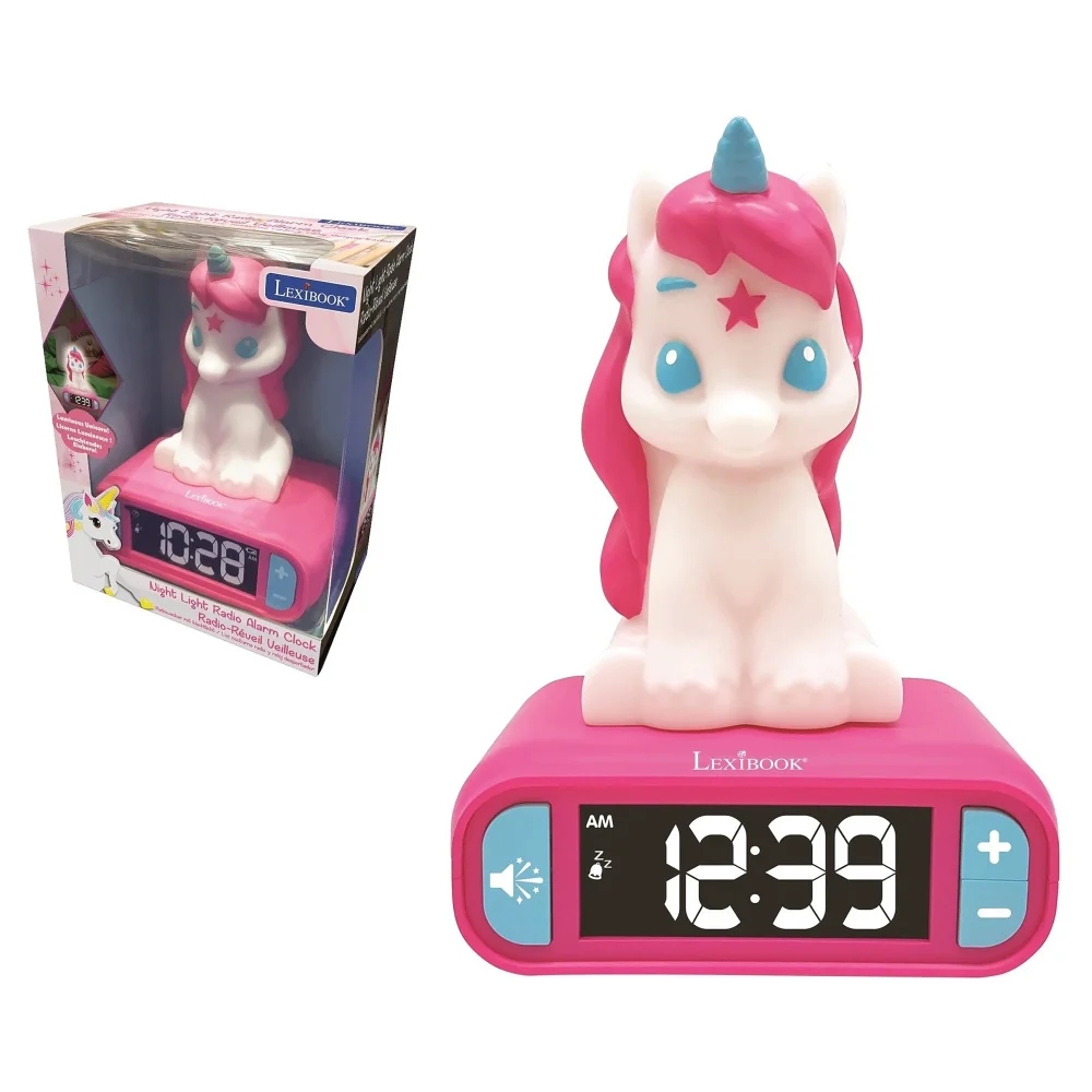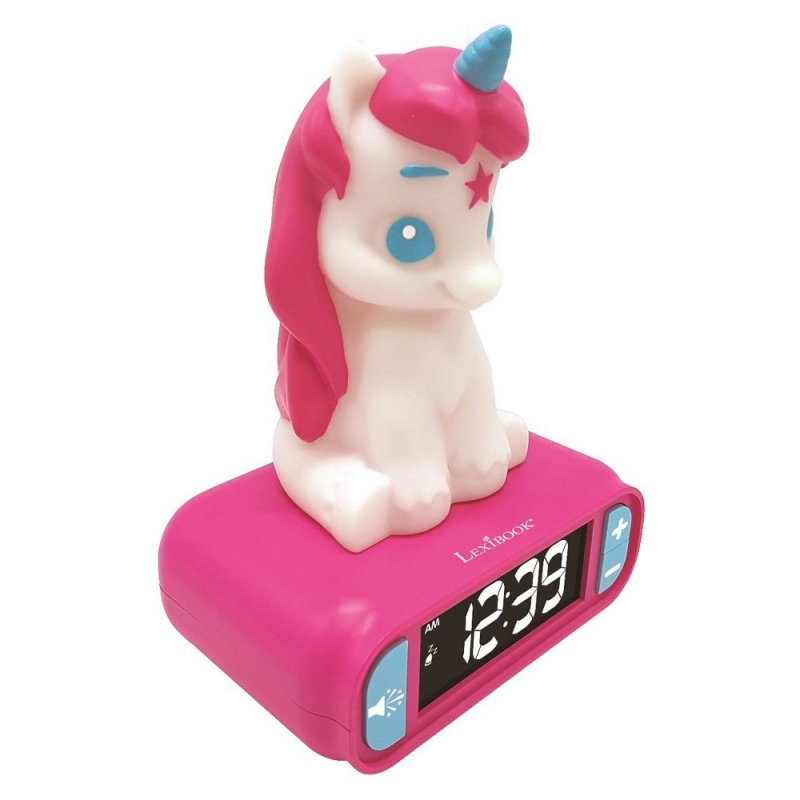 Super roztomilý budík pro děti, který se po probuzení nebo stisknutí na několik minut rozsvítí. Digitální LCD displej s dočasným podsvícením. Tlačítko pro spuštění zvukových efektů! Budík s nastavitelnou hlasitostí a výběrem vyzváněcích tónů. Ideální pro jemné probuzení! Snadné použití: stisknutím horní části budíku nebo postavičky budík vypnete. Funkce „odložení“. Napájení: 3 baterie AA / LR6 (nejsou součástí dodávky) s indikátorem slabých baterií.