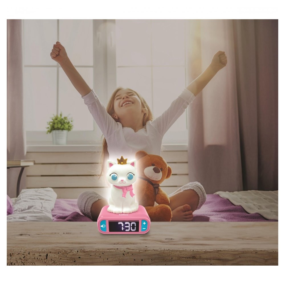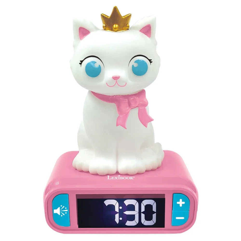 Super roztomilý budík pro děti, který se po probuzení nebo stisknutí na několik minut rozsvítí. Digitální LCD displej s dočasným podsvícením. Tlačítko pro spuštění zvukových efektů! Budík s nastavitelnou hlasitostí a výběrem vyzváněcích tónů. Ideální pro jemné probuzení! Snadné použití: stisknutím horní části budíku nebo postavičky budík vypnete. Funkce „odložení“. Napájení: 3 baterie AA / LR6 (nejsou součástí dodávky) s indikátorem slabých baterií.