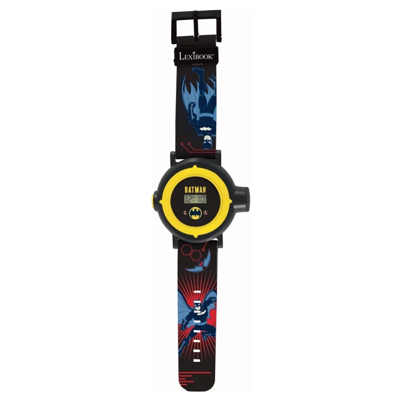S digitálními hodinkami s motivy Batmana můžete promítat 20 obrázků a připravit tak úžasnou projekci pro své kamarády kdekoliv chcete. Náramek hodinek je nastavitelný, aby dobře seděl i na malých zápěstích. Promítání obrázků pomocí pohyblivého kroužku.  Zobrazení data a času. Napájení: 5 x AG3/ baterie LR41 (součástí balení).