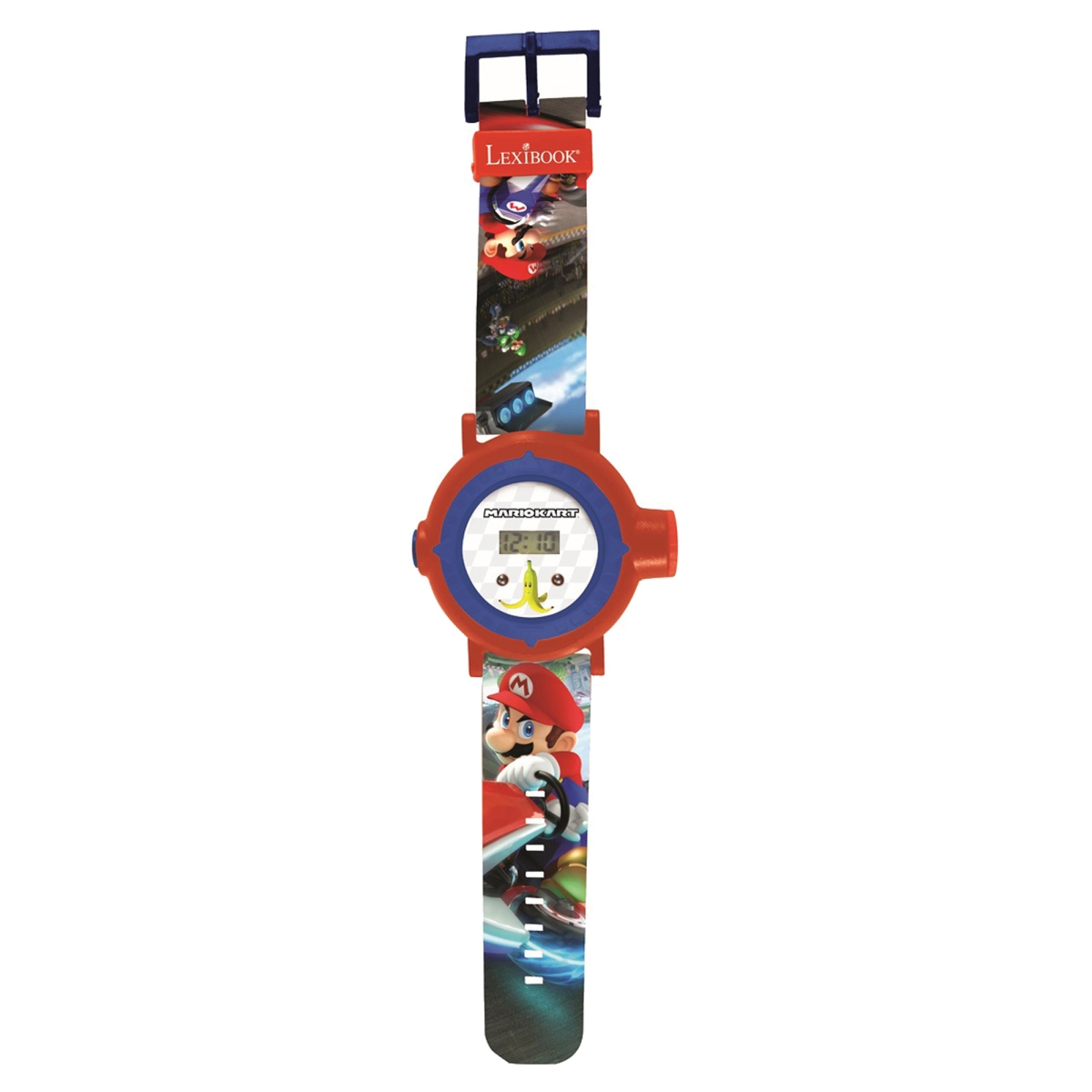 S digitálními hodinkami s motivy Mario Kart můžete promítat 20 obrázků a připravit tak úžasnou projekci pro své kamarády kdekoliv chcete. Náramek hodinek je nastavitelný, aby dobře seděl i na malých zápěstích. Promítání obrázků pomocí pohyblivého kroužku.  Zobrazení data a času. Napájení: 5 x AG3/ baterie LR41 (součástí balení).