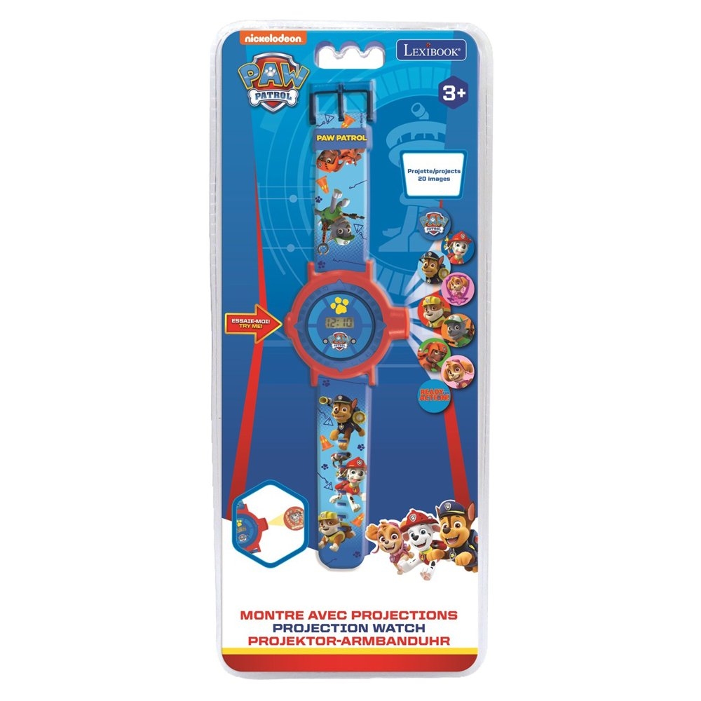 S digitálními hodinkami s motivy Tlapkové patroly můžete promítat 20 obrázků a připravit tak úžasnou projekci pro své kamarády kdekoliv chcete. Náramek hodinek je nastavitelný, aby dobře seděl i na malých zápěstích. Promítání obrázků pomocí pohyblivého kroužku.  Zobrazení data a času. Napájení: 5 x AG3/ baterie LR41 (součástí balení).