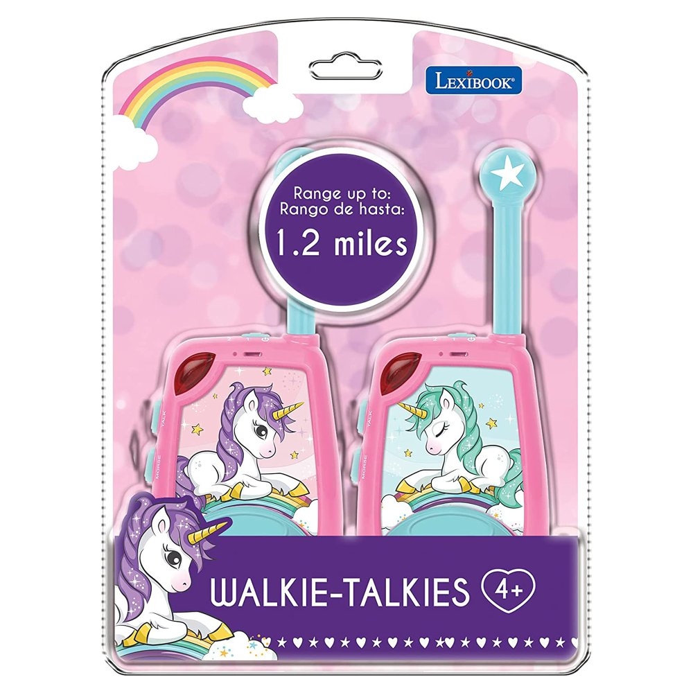 Hry plné dobrodružství a napětí s opravdovými funkčními vysílačkami jako mají policisté a agenti! Ergonomicky tvarované vysílačky s motivy Jednorožce mají dosah až 2 km v závislosti od prostředí a povětrnostních podmínek. Díky praktickému klipu lze vysílačku snadno připnout na pásek a ruce zůstávají volné. Vhodné na použití venku i uvnitř. Připevnění na opasek pomocí spony. Ovládání hlasitosti. Vysílačky s funkcí Morseovy abecedy. Napájení: 6 baterií AAA / LR03 (nejsou součástí balení). Vhodné pro děti od 3 let.