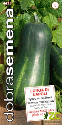 LUNGA DI NAPOLI ¦ plazivá muškátová (máslová) tykev s velkými plody dorůstajícími až do 18 kg. Plod je kyjovitý, podlouhlý, s tmavě zelenou slupkou a se semeny pouze ve vrcholové části. Dužnina je sytě oranžová, velice chutná, kompaktní a středně pevná. Vosková vrstvička na povrchu plodu zajišťuje dobrou skladovatelnost. Plody skladujte v suchu při teplotě nad 12 °C .