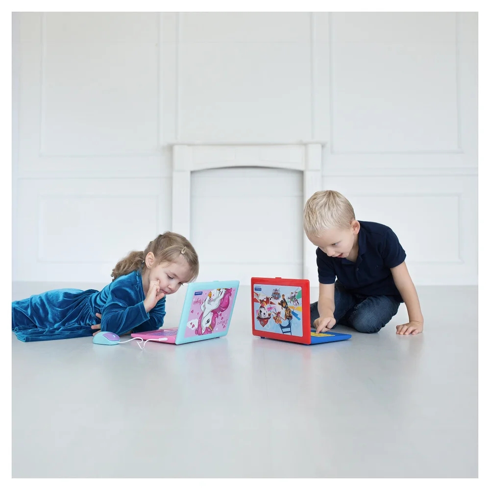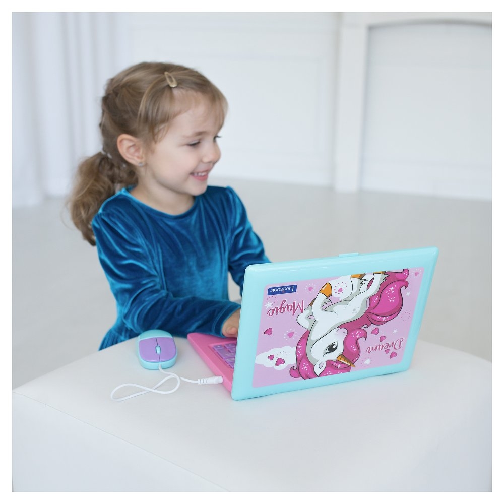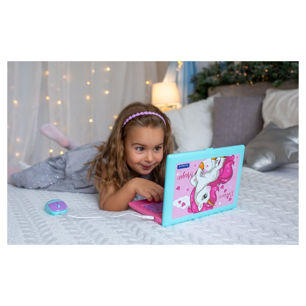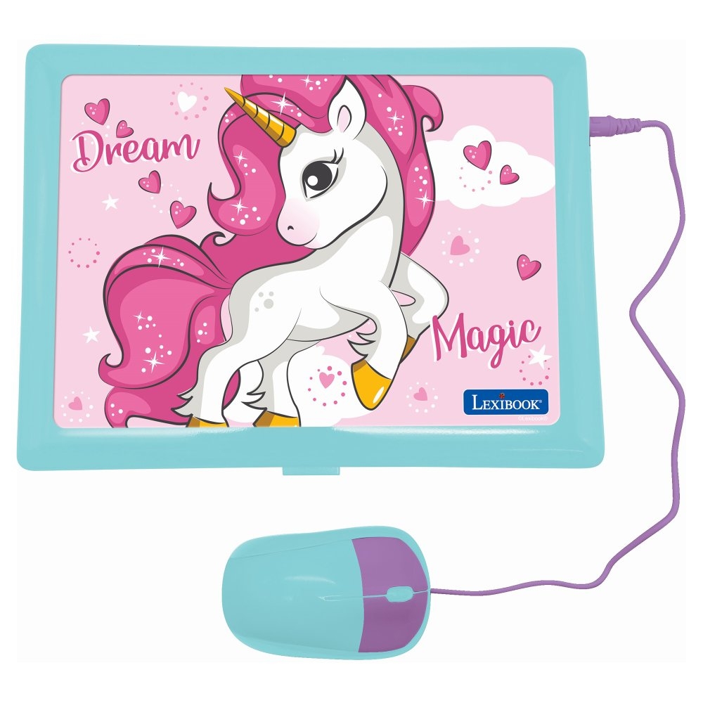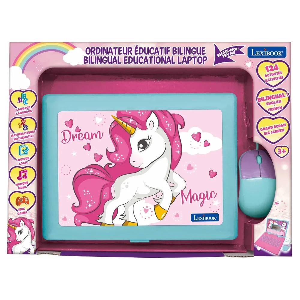 Zamilovaly se vaše děti do Jednorožců? Není divu! Tato fascinující a tajemná stvoření s okouzlující duhově zbarvenou hřívou, třpytkami a kouzelnými rohy probouzejí v našich nejmenších pocity radosti a štěstí, a stávají se tak symbolem dětské fantazie. Ať už je vídáme v pohádkách, filmech nebo knížkách, jejich půvab nás pokaždé ohromí. Nechte tato éterická zvířátka doprovázet vaše malé snílky na jejich cestě do světa plného představivosti a zvědavosti, který zůstane navždy v jejich srdcích!Pokud hledáte způsob, jak do herních aktivit zapojit prvek vzdělávání, pak je tento dětský notebook ideální volbou. Podoba s opravdovým notebookem, reálná myš a LCD displej o velikosti 5,1 x 9,7 cm je lákadlem pro všechny malé nadšence, kteří se chtějí přiblížit dospěláckému světu. 124 aktivit z různých oblastí, z nichž polovina je v angličtině a druhá polovina ve francouzštině je určeno k zábavnému učení, trénování paměti, rychlosti a zlepšování všeobecných dovedností. Na výběr je matematika, kde se děti naučí nejen čísla, ale také základní početní operace. Výuka dvou jazyků je seznámí s písmeny, slovy a výslovností a dvojjazyčná klávesnice jim umožní vyzkoušet si psaní. Hraní paměťových her jim pomůže potrénovat logiku a opomenuta není ani hudba, kde děti určují správné znění melodií. V notebooku najdete také hry a poznávání času.Vzdělávací notebook je napájen dvěma 1,5 V bateriemi typu AA/LR06 (nejsou součástí balení). Přihrádku na baterie na spodní straně zařízení otevřete pomocí šroubováku (není součástí balení).Vzdělání je skutečně tou nejlepší investicí pro budoucí rozvoj vašeho dítěte. Podpořte jejich přirozenou zvídavost a touhu po učení a obklopte je vzdělávacími podněty již v raném věku. Přispíváte tak ke stimulaci mozku a rozvoji schopností. Navíc získávání jazykových dovedností v raném věku je jednodušší a přirozenější než kdykoliv jindy. Klíčové vlastnostiTéma JednorožecDvojjazyčný francouzsko-anglický notebookVzdělávání formou zábavyDvojjazyčná forma vzdělávání je ideální pro děti v raném věku124 různých aktivit (62 v každém jazyce)Rozvoj schopností dítětePodpora přirozené zvídavosti a stimulace mozkuUčení, procvičování, zlepšování dovedností v oboru matematiky, jazyků, psaní, hudby a logikyNa výběr z několika zábavných herProvedení inspirováno skutečným notebookemReálná myš a funkční dvojjazyčná klávesniceLCD displej o velikosti 5,1 x 9,7 cmNapájení: 2x 1,5 V baterie typu AA/LR06 (nejsou součástí balení)