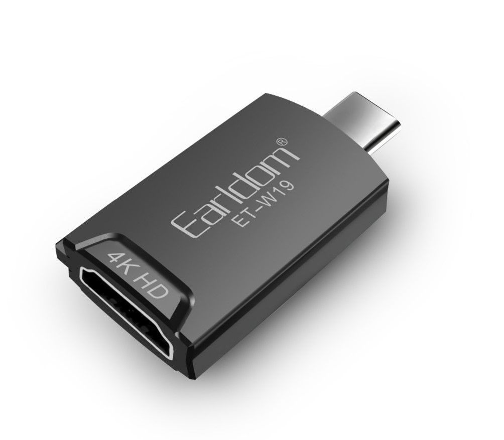 Adaptér Earldom ET-W19 USB-C na HDMI umožňuje připojit notebook, tablet nebo kompatibilní telefon s USB-C k monitoru, televizi nebo projektoru přes HDMI. Podporuje rozlišení až 4K, takže je vhodný pro prezentace, práci i sledování multimédií na větší obrazovce.