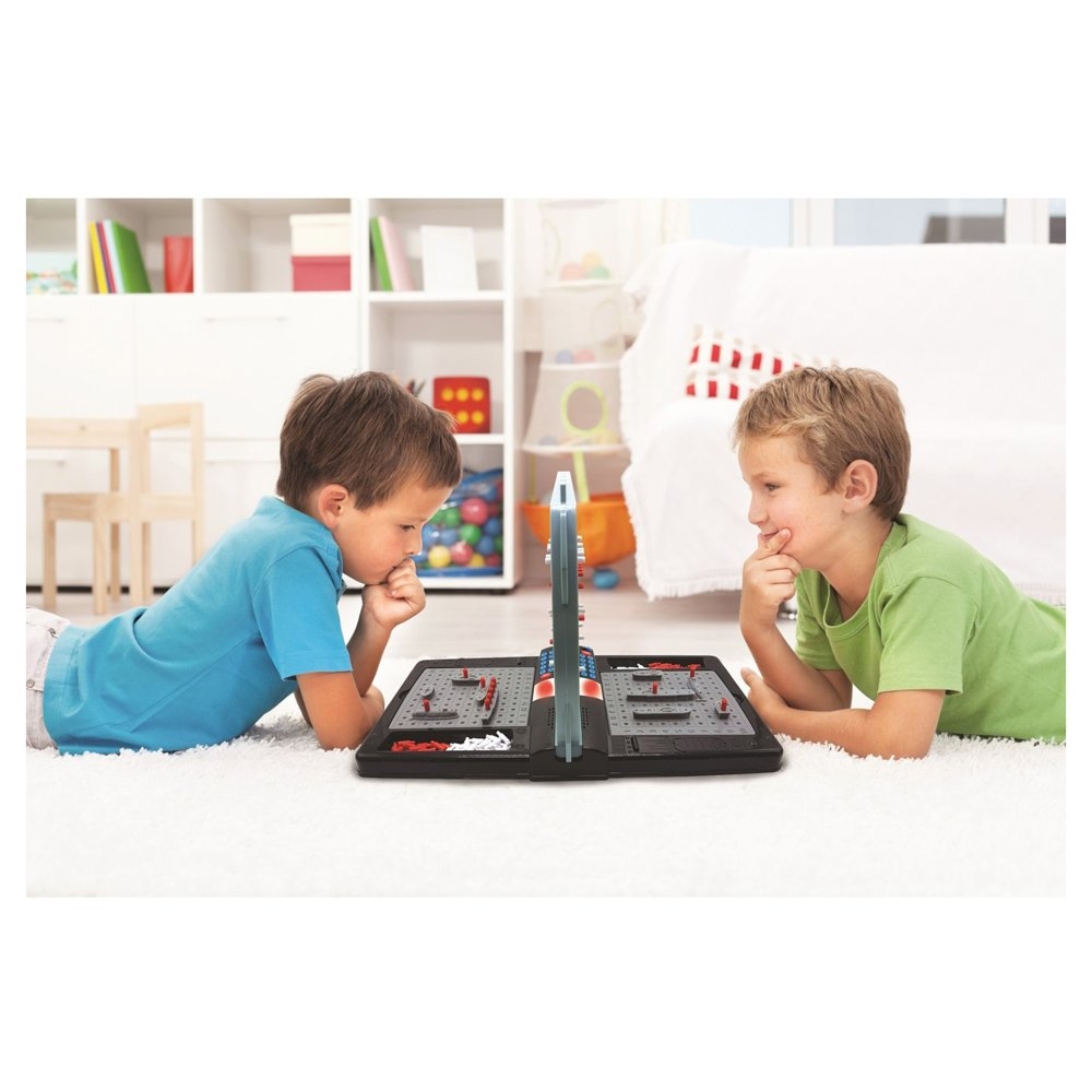 1 až 2 hráči: hrajte proti počítači nebo vyzvěte přítele! Cíl hry: jako první potopte protivníkovi 5 lodí. 2 herní režimy: normální režim nebo obtížný režim, ve kterém počítač neurčí, která loď je zasažena. 4 jazyky: CZ / SL / PO / HU Realistické bojové zvuky odrážející situaci ve hře (nastavení, střelba, zmeškaný / zasažený / potopený cíl) pro intenzivní prožití bitvy! Blikající světlo při nárazu nebo potopení člunu. Automatické vypnutí. Úložný prostor pod oceánskými mřížkami. Obsah krabice: 2 oceánské mřížky, 2 cílové mřížky, 10 lodí, 80 červených pěšců, 200 bílých pěšců a návod s pravidly hry. Napájení: 3 x AA / LR6 baterie 1,5 V (součástí balení). Záruka: 2 roky. Navrženo a vyvinuto v Evropě - vyrobeno v Číně.