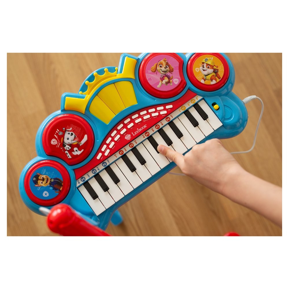 Elektronické klávesy se sedátkem a mikrofonem jsou praktickým hudebním nástrojem pro zábavu a domácí učení. S 24 osvětlenými klávesami a mnoha funkcemi, jako jsou demonstrační melodie, 8 tónů nástrojů a 4 rytmy, se děti budou bavit celé hodiny! Červené světlo na klávesách dětem pomáhá najít další notu k zahrání, což usnadňuje proces učení a rozvoje hudebních dovedností. Díky možnosti připojení MP3 přehrávače (není součástí balení) a mikrofonu je nástroj ideální pro zpěv a hraní oblíbených skladeb. Předností je nastavitelná hlasitost a rozměry 41 x 21 x 59 cm, díky kterým se klávesy snadno vejdou do každého prostoru. Podpořte hudební talent nejmenších a tvořte nezapomenutelné zážitky.Klávesy fungují na čtyři 1,5 V baterie typu AA/LR6 (nejsou součástí balení) nebo po připojení k USB kabelu (součástí balení). K otevření přihrádky použijte šroubovák (není součástí balení).Pokud vaši nejmenší rádi zpívají a láká je svět hudby, pomozte jim objevit jejich vášeň a talent a podpořte jejich kreativitu. Umožněte jim zpívat a hrát jako jejich oblíbená hudební hvězda. Hudební aktivity zároveň stimulují kognitivní funkce mozku a přinášejí spoustu výhod, jako vývoj motorického plánování, koordinace a rozvoj smyslů.Klíčové vlastnostiElektronické klávesy se sedátkem Tlapková patrolaSkvělý nástroj pro malé začínající hvězdyDětský mikrofon s nastavitelným držákemMnoho funkcí pro hodiny zpěvu a hudební zábavy24 osvětlených klávesRežim učení: červené světlo na klávesách děti vede na další notu k zahráníDemonstrační melodie, 8 tónů nástrojů a 4 rytmyNastavitelná hlasitostPodpora kreativity a rozvoje hudebního talentuPodpora vývoje motorického plánování a koordinaceMožnost připojit MP3 přehrávač (není součástí balení) pomocí 3,5mm audio kabelu (součástí balení) pro hraní oblíbených dětských písničekNapájení: čtyři 1,5 V baterie typu AA/LR6 (nejsou součástí balení) nebo pomocí USB kabelu (součástí balení)Přibližná velikost: 41 x 21 x 59 cm