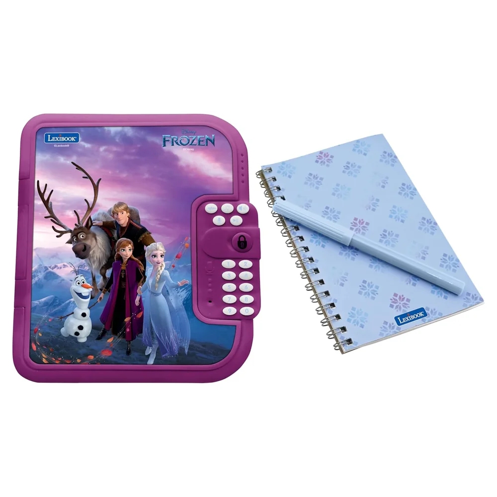 Milované sestry Elsa a Anna, vtipný sněhulák Olaf, Kristoff a jeho sobí kamarád Sven zavedou vaše děti do fantastického světa Ledového království, plného úchvatných sněhových krajin a neuvěřitelných příběhů. Každé dítě se nadšeně vydá na vzrušující cestu touto kouzelnou pohádkou po boku svých oblíbených postaviček. Ať už zpívají, tančí, nosí kostýmy nebo si hrají s hračkami z tohoto světa – prostě přiveďte své malé fanoušky do království Arendelle a užijte si všechno „Najednou“! Tento nádherný elektronický zápisník potěší všechny, kteří si rádi střeží svá tajemství. Elektronický diář lze uzamčít pomocí 4místného hesla. V deníku je ukryta tajná přihrádka s rozkošným zápisníkem pro uschování důvěrných dětských poznámek před zvědavýma očima. Diář nabízí další zábavné funkce jako diktafon, měnič hlasu, rámeček na fotografie nebo kouzelné zvukové efekty. Součástí balení je také pero. A když dětem dojdou stránky? Zápisník stačí jednoduše vyměnit za nový. Deník je napájen třemi 1,5 V bateriemi typu AA/LR6 (nejsou součástí balení). Přihrádku otevřete pomocí šroubováku (není součástí balení). Dětská tajemství pomáhají tomu, aby se děti oddělily od světa dospělých, což je důležitý krok k budování vlastní identity. Nechte je střežit si své poklady nebo zápisky. Mnoho dětí se cítí lépe, když mohou vyjádřit své myšlenky na bezpečném místě bez předsudků. Respektujte neškodná dětská tajemství a upevňujte si tak s dětmi důvěrný vztah. Klíčové vlastnosti Elektronický tajný zápisník Ledové království Dovolte dětem střežit si své tajné zápisky na bezpečném místě Odemknutí diáře pomocí 4místného hesla Zápisník a pero součástí balení (možnost zápisník nahradit) Diktafon a měnič hlasu Rámeček na fotografie 10 kouzelných zvukových efektů Napájení: 3x 1,5 V baterie typu AA/LR6 (nejsou součástí balení), přihrádku otevřete pomocí šroubováku (není součástí balení) Přibližné rozměry deníku: ‎12 x 20 x 3,7 cm