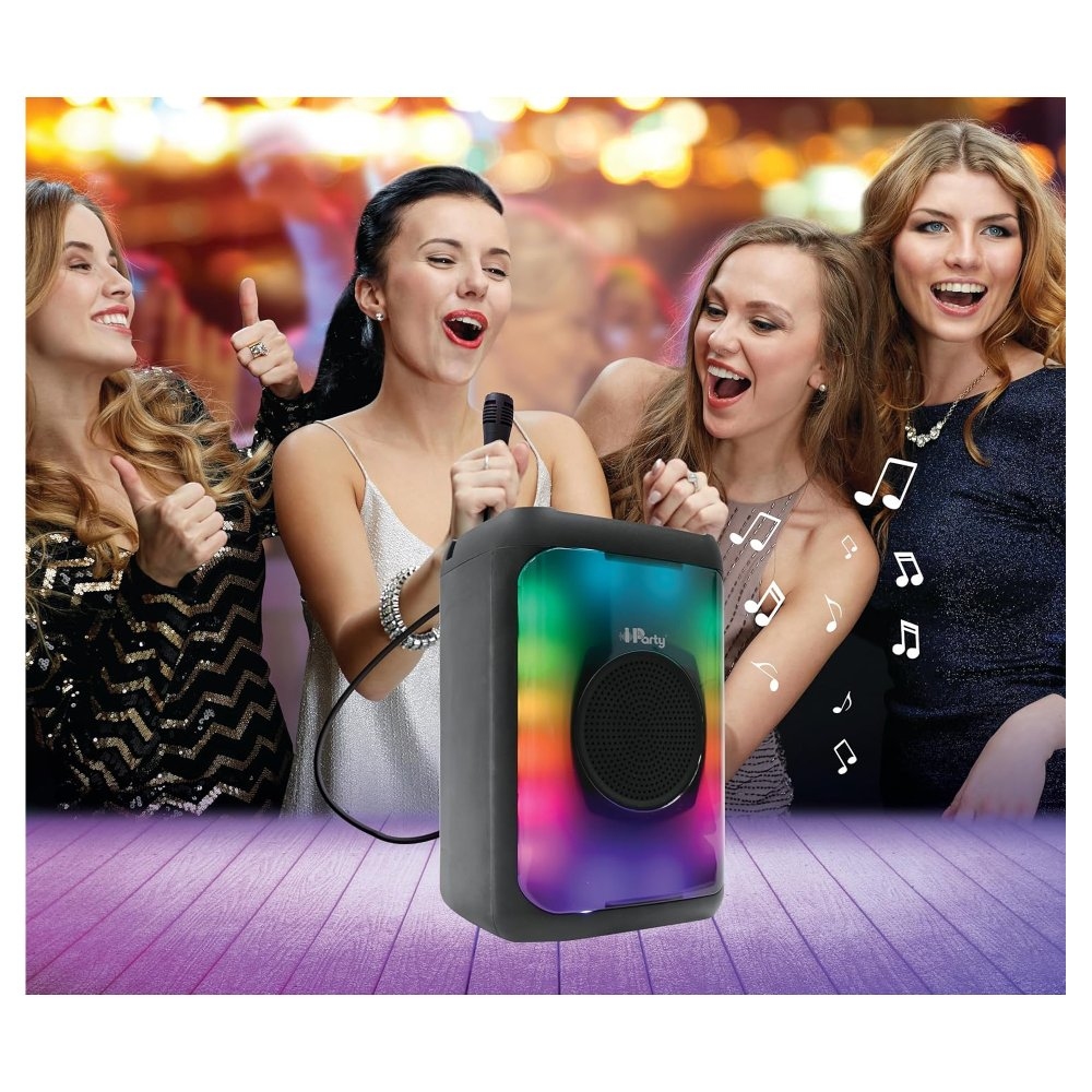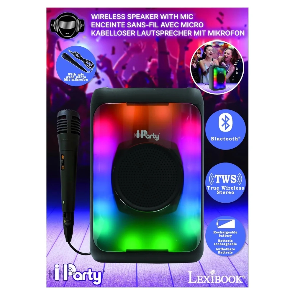 Reproduktor s vícebarevnými světelnými efekty a mikrofonem je nezbytným doplňkem pro každou karaoke párty. Bezproblémově funguje bezdrátově s jakýmkoli zařízením podporujícím Bluetooth 5.0. Kromě toho sloty pro USB a micro-SD/TF karty (karty ani USB disk nejsou součástí balení) spolu s 3,5mm pomocným vstupem vám umožní bez námahy připojit jakékoli audio zařízení a vychutnat si hudbu podle vlastního výběru. Díky dobíjecí baterii je možné reproduktor přenášet a užívat si skvělou hudební atmosféru kdekoliv. Funkce TWS umožňuje synchronizaci dvou reproduktorů (druhý reproduktor není součástí balení) a vychutnat si dokonalý stereo zvuk. Budete mít dojem, že hudba zní "naživo" přímo u vás doma.Vestavěnou dobíjecí baterii nabijete pomocí USB kabelu (kabel je součástí balení, adaptér není součástí balení).Reproduktor s barevnými světelnými efekty nabízí nespočet možností pro zábavu i relaxaci. Vytvořte jedinečnou atmosféru a zpestřete dětem volný čas hudebními zážitky.Klíčové vlastnostiReproduktor s mikrofonem a vícebarevnými světelnými efekty (střední)Vytvořte zábavnou atmosféru kdekolivIdeální pro dětskou hudební zábavu9 krásných světelných režimůDíky mikrofonu využijete na karaoke zábavuBezdrátové připojení přes Bluetooth 5.0 (např. smartphone, tablet)Další možnosti přehrávání: 3,5mm Aux-in (kabel součástí balení), USB port, slot na SD/TF karty (USB disk a karty nejsou součástí balení)Vestavěné ovládání hudbyTWS systém: propojte 2 reproduktory pro stereo zvuk (druhý reproduktor není součástí balení)S rukojetí pro snadné přenášeníDobíjení vestavěné baterie přes USB kabel (kabel je součástí balení, napájecí adaptér není součástí balení)Rozměry: 17,5 x 16,3 x 26 cm