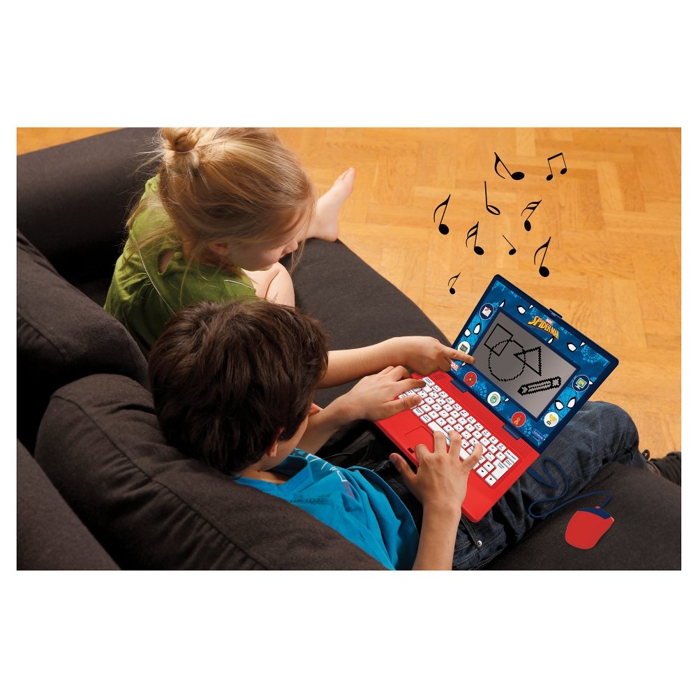 Pokud hledáte způsob, jak do herních aktivit zapojit prvek vzdělávání, pak je tento dětský notebook ideální volbou. Podoba s opravdovým notebookem, reálná myš a LCD displej o velikosti 6,7" je lákadlem pro všechny malé nadšence, kteří se chtějí přiblížit dospěláckému světu. 170 aktivit ze 7 různých oblastí, z nichž polovina je v angličtině a druhá polovina ve francouzštině, je určeno k zábavnému a interaktivnímu učení. Na výběr je matematika, kde se děti naučí nejen čísla, ale také základní početní operace a geometrii. Výuka dvou jazyků je seznámí s písmeny, slovy a čtením a dvojjazyčná klávesnice jim umožní vyzkoušet si psaní. Hraní her jim pomůže potrénovat logiku (např. hra domino) a opomenuta není ani hudba, kde děti určují správné znění melodií. V notebooku najdete také hry a poznávání času.Vzdělávací notebook je napájen dvěma 1,5 V bateriemi typu AA/LR06 (jsou součástí balení). Přihrádku na baterie na spodní straně zařízení otevřete pomocí šroubováku (není součástí balení).Vzdělání je skutečně tou nejlepší investicí pro budoucí rozvoj vašeho dítěte. Podpořte jejich přirozenou zvídavost a touhu po učení a obklopte je vzdělávacími podněty již v raném věku. Přispíváte tak ke stimulaci mozku a rozvoji schopností. Navíc získávání jazykových dovedností v raném věku je jednodušší a přirozenější než kdykoliv jindy.Klíčové vlastnostiFrancouzsko-anglický vzdělávací notebook Spidey a jeho úžasní přáteléOd 4 do 8 letVzdělávání formou zábavyDvojjazyčná forma vzdělávání je ideální pro děti v raném věku170 různých aktivit (85 v každém jazyce); pozn.: v tomto zařízení jsou dostupné pouze dva uvedené jazykyPodpora přirozené zvídavosti a stimulace mozku7 kategorií vzdělávacího obsahu (jazyk, psaní, matematika, logika, hodiny/čas, hudba a hry)Učení, procvičování, zlepšování dovedností, čtení, psaní, slovní zásoba, diktáty, čísla i hraníNa výběr z několika zábavných herProvedení inspirováno skutečným notebookemReálná myš a funkční dvojjazyčná klávesniceLCD displej o velikosti 6,7" (15,1 x 7,7cm)Rozměry výrobku (v zavřeném stavu): 24 x 18 x 3,6 cmNapájení: 2x 1,5 V baterie typu AA/LR06 (jsou součástí balení)