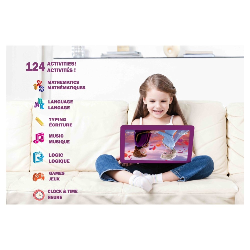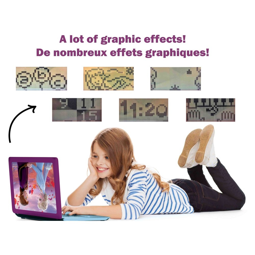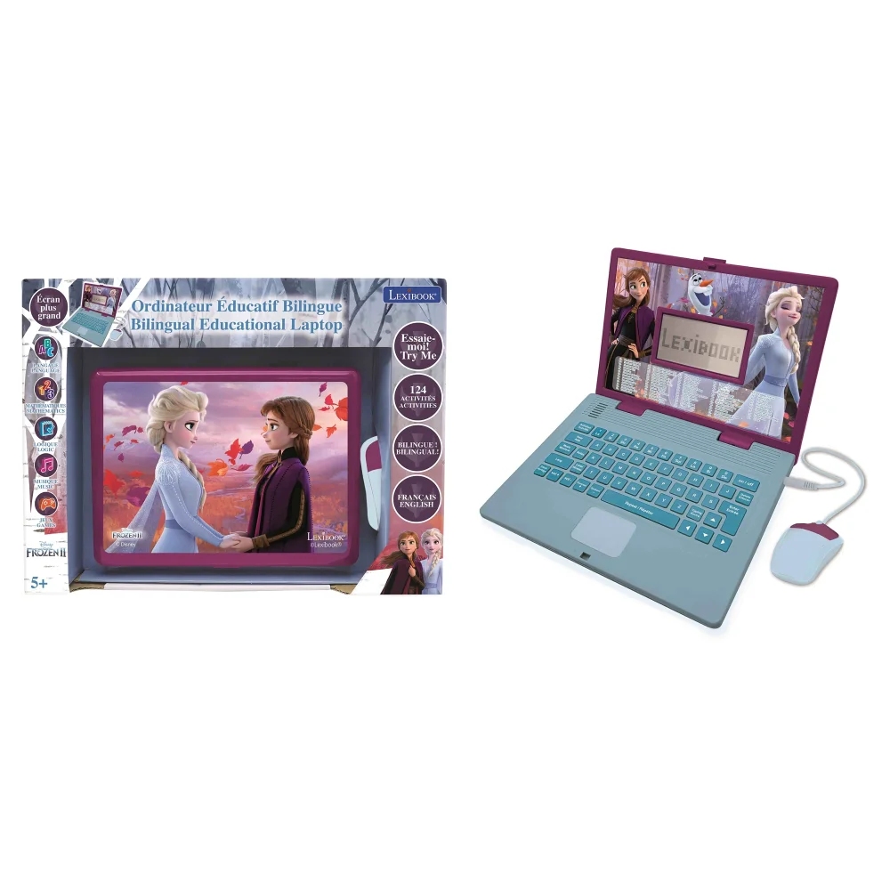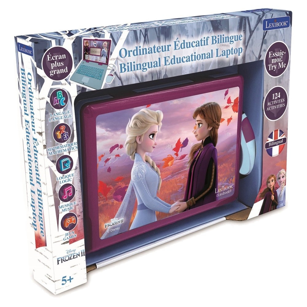 Milované sestry Elsa a Anna, vtipný sněhulák Olaf, Kristoff a jeho sobí kamarád Sven zavedou vaše děti do fantastického světa Ledového království, plného úchvatných sněhových krajin a neuvěřitelných příběhů. Každé dítě se nadšeně vydá na vzrušující cestu touto kouzelnou pohádkou po boku svých oblíbených postaviček. Ať už zpívají, tančí, nosí kostýmy nebo si hrají s hračkami z tohoto světa – prostě přiveďte své malé fanoušky do království Arendelle a užijte si všechno „Najednou“!Pokud hledáte způsob, jak do herních aktivit zapojit prvek vzdělávání, pak je tento dětský notebook ideální volbou. Podoba s opravdovým notebookem, reálná myš a LCD displej o velikosti 5,1 x 9,7 cm je lákadlem pro všechny malé nadšence, kteří se chtějí přiblížit dospěláckému světu. 124 aktivit z různých oblastí, z nichž polovina je v angličtině a druhá polovina ve francouzštině je určeno k zábavnému učení, trénování paměti, rychlosti a zlepšování všeobecných dovedností. Na výběr je matematika, kde se děti naučí nejen čísla, ale také základní početní operace. Výuka dvou jazyků je seznámí s písmeny, slovy a výslovností a dvojjazyčná klávesnice jim umožní vyzkoušet si psaní. Hraní paměťových her jim pomůže potrénovat logiku a opomenuta není ani hudba, kde děti určují správné znění melodií. V notebooku najdete také hry a poznávání času.Vzdělávací notebook je napájen dvěma 1,5 V bateriemi typu AA/LR06 (nejsou součástí balení). Přihrádku na baterie na spodní straně zařízení otevřete pomocí šroubováku (není součástí balení).Vzdělání je skutečně tou nejlepší investicí pro budoucí rozvoj vašeho dítěte. Podpořte jejich přirozenou zvídavost a touhu po učení a obklopte je vzdělávacími podněty již v raném věku. Přispíváte tak ke stimulaci mozku a rozvoji schopností. Navíc získávání jazykových dovedností v raném věku je jednodušší a přirozenější než kdykoliv jindy. Klíčové vlastnostiTéma Ledové královstvíDvojjazyčný francouzsko-anglický notebookVzdělávání formou zábavyDvojjazyčná forma vzdělávání je ideální pro děti v raném věku124 různých aktivit (62 v každém jazyce)Rozvoj schopností dítětePodpora přirozené zvídavosti a stimulace mozkuUčení, procvičování, zlepšování dovedností v oboru matematiky, jazyků, psaní, hudby a logikyNa výběr z několika zábavných herProvedení inspirováno skutečným notebookemReálná myš a funkční dvojjazyčná klávesniceLCD displej o velikosti 5,1 x 9,7 cmNapájení: 2x 1,5 V baterie typu AA/LR06 (nejsou součástí balení)