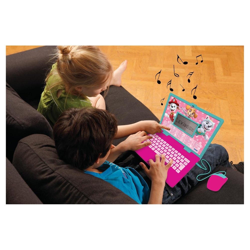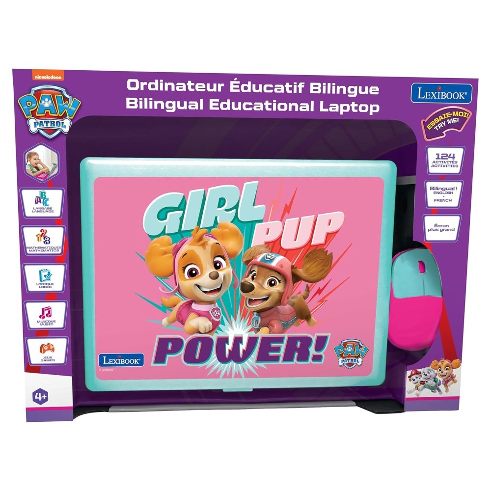 Celosvětový fenomén Tlapková patrola si díky svým štěněcím hrdinům získal děti všech věkových kategorií! Nejde jen o podmanivý příběh o pátracích a záchranářských misích, který upoutá dětskou pozornost, ale barevné grafické zpracování a chytlavá znělka dodávají pořadu jeho kouzlo. Rozkošné postavy, jako Marshall, Chase, Skye, Rubble, Rocky, Zuma a jejich lidský vůdce týmu Ryder, si získali místo v srdci každého dítěte po celém světě. Vaše děti budou naprosto nadšené čímkoliv, co souvisí s těmito milovanými chlupatými kamarády!Pokud hledáte způsob, jak do herních aktivit zapojit prvek vzdělávání, pak je tento dětský notebook ideální volbou. Podoba s opravdovým notebookem, reálná myš a LCD displej o velikosti 5,1 x 9,7 cm je lákadlem pro všechny malé nadšence, kteří se chtějí přiblížit dospěláckému světu. 124 aktivit z různých oblastí, z nichž polovina je v angličtině a druhá polovina ve francouzštině je určeno k zábavnému učení, trénování paměti, rychlosti a zlepšování všeobecných dovedností. Na výběr je matematika, kde se děti naučí nejen čísla, ale také základní početní operace. Výuka dvou jazyků je seznámí s písmeny, slovy a výslovností a dvojjazyčná klávesnice jim umožní vyzkoušet si psaní. Hraní paměťových her jim pomůže potrénovat logiku a opomenuta není ani hudba, kde děti určují správné znění melodií. V notebooku najdete také hry a poznávání času.Vzdělávací notebook je napájen dvěma 1,5 V bateriemi typu AA/LR06 (nejsou součástí balení). Přihrádku na baterie na spodní straně zařízení otevřete pomocí šroubováku (není součástí balení).Vzdělání je skutečně tou nejlepší investicí pro budoucí rozvoj vašeho dítěte. Podpořte jejich přirozenou zvídavost a touhu po učení a obklopte je vzdělávacími podněty již v raném věku. Přispíváte tak ke stimulaci mozku a rozvoji schopností. Navíc získávání jazykových dovedností v raném věku je jednodušší a přirozenější než kdykoliv jindy. Klíčové vlastnostiTéma Tlapková patrola (v růžové barvě)Dvojjazyčný francouzsko-anglický notebookVzdělávání formou zábavyDvojjazyčná forma vzdělávání je ideální pro děti v raném věku124 různých aktivit (62 v každém jazyce)Rozvoj schopností dítětePodpora přirozené zvídavosti a stimulace mozkuUčení, procvičování, zlepšování dovedností v oboru matematiky, jazyků, psaní, hudby a logikyNa výběr z několika zábavných herProvedení inspirováno skutečným notebookemReálná myš a funkční dvojjazyčná klávesniceLCD displej o velikosti 5,1 x 9,7 cmNapájení: 2x 1,5 V baterie typu AA/LR06 (nejsou součástí balení)
