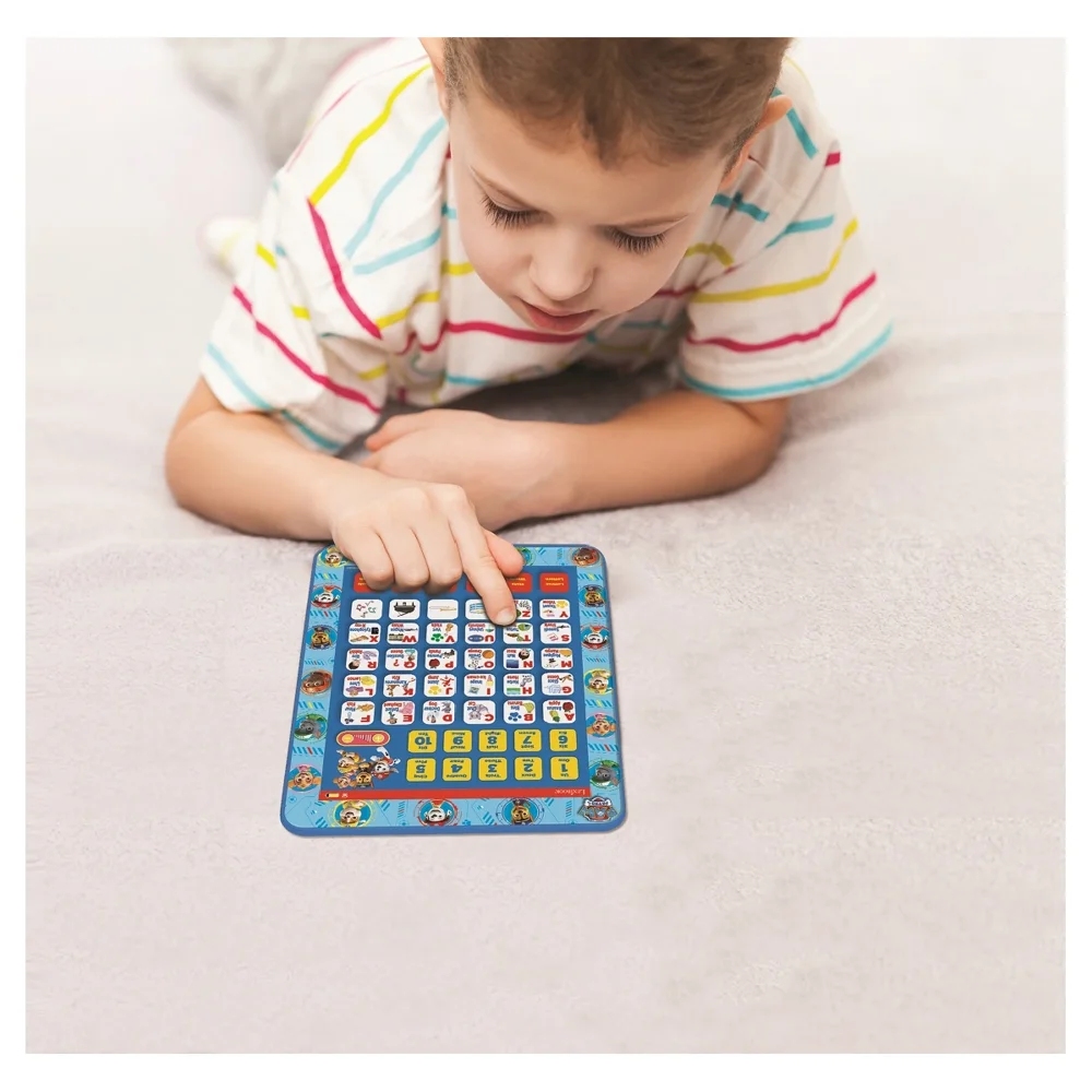 Mluvící, francouzsko-anglický vzdělávací tablet, je ideální pro výuku čísel, abecedy a základní slovní zásoby zábavnou formou! Jeho interaktivní dotykový displej s tlačítky umožňuje snadné přehrání slov, písmen a čísel jediným stiskem. Umí také přehrávat melodie. Součástí tabletu je kvíz, který dítě obohacuje o interaktivní systém otázek a odpovědí, na které odpoví snadným stisknutím příslušného tlačítka. Tablet je lehký, snadno se drží a je pohodlné vzít jej kamkoliv s sebou.Tablet funguje na tři 1,5 V baterie typu AAA/LR03 (přiložené baterie jsou pouze demonstrační).Podněcování aktivit, které podporují přirozenou zvídavost a touhu dětí po učení, posiluje mozek a rozvíjí jejich schopnosti. Navíc, získání jazykových dovedností v raném věku je mnohem snazší a přirozenější.Klíčové vlastnostiDětský mluvící tablet Tlapková patrolaPerfektní pro menší děti a batolataDvojjazyčný – francouzsko-anglickýDotyková obrazovka – stisknutí klávesy pro vydání zvukůUčení se abecedy, čísel a slovíček (zvířata, ovoce apod.)Rozvoj dovedností ve dvou jazycíchHraní kvízů – děti odpovídají stiskem tlačítekHudební zvukyIdeální pro rozvoj schopností v raném věkuLehký – snadno se přenáší a držíNapájení: 3x 1,5 V baterie typu AAA/LR03 (součástí pouze demonstrační baterie)Přibližné rozměry: 19 x 24,3 x 1,4 cm