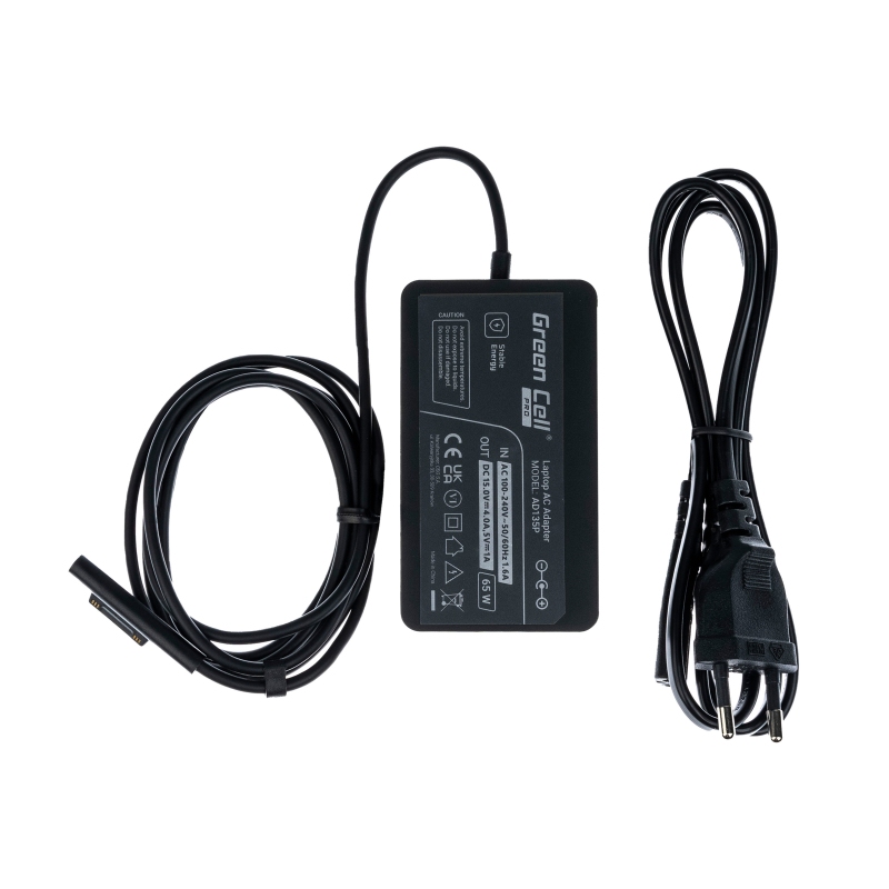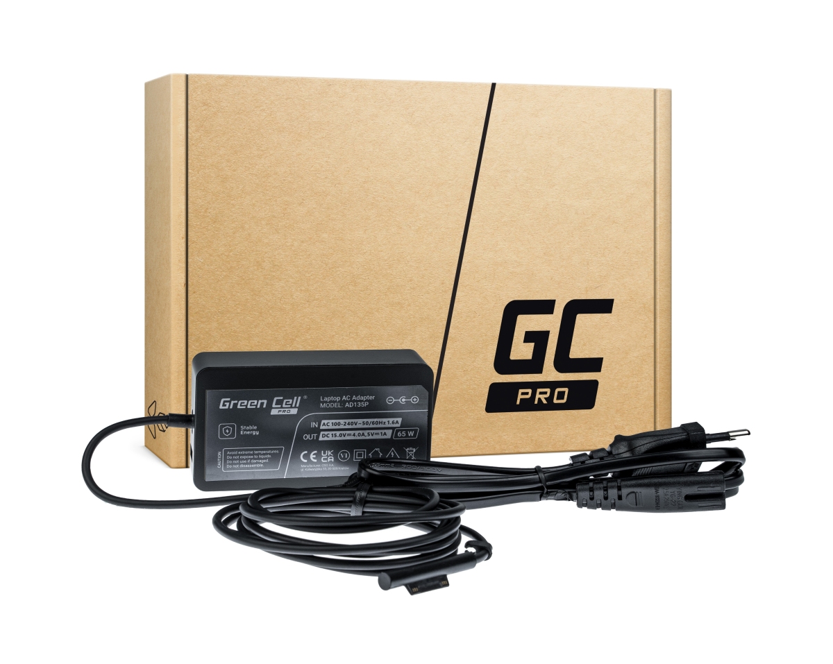 Napájecí adaptér Green Cell PRO určený jako náhrada za napájecí adaptér Microsoft 65W 15V 4A. Perfektně padnoucí nabíječka efektivně nabije vaše zařízení doma, v kanceláři i na cestách
