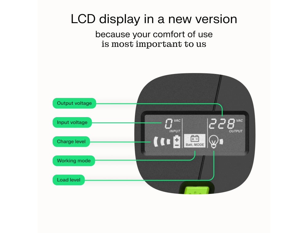 Díky krátké době přepnutí do bateriového režimu (běžně do 6 ms) zůstává vaše elektronika chráněna i během výpadků. Přehledný LCD displej a možnost monitoringu přes aplikaci přináší komfort a kontrolu. UPS je ideální pro náročná pracovní prostředí, servery, NAS úložiště, routery nebo citlivou audio/video techniku.