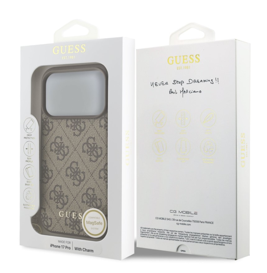 Guess 4G Charm MagSafe Zadní Kryt pro iPhone 17 Pro Tone on Tone – hnědá